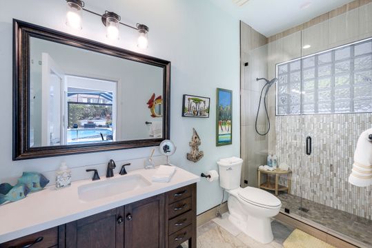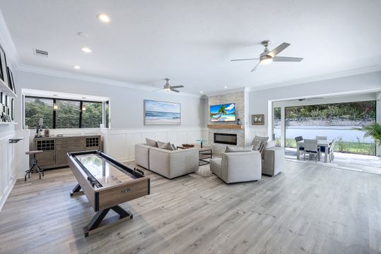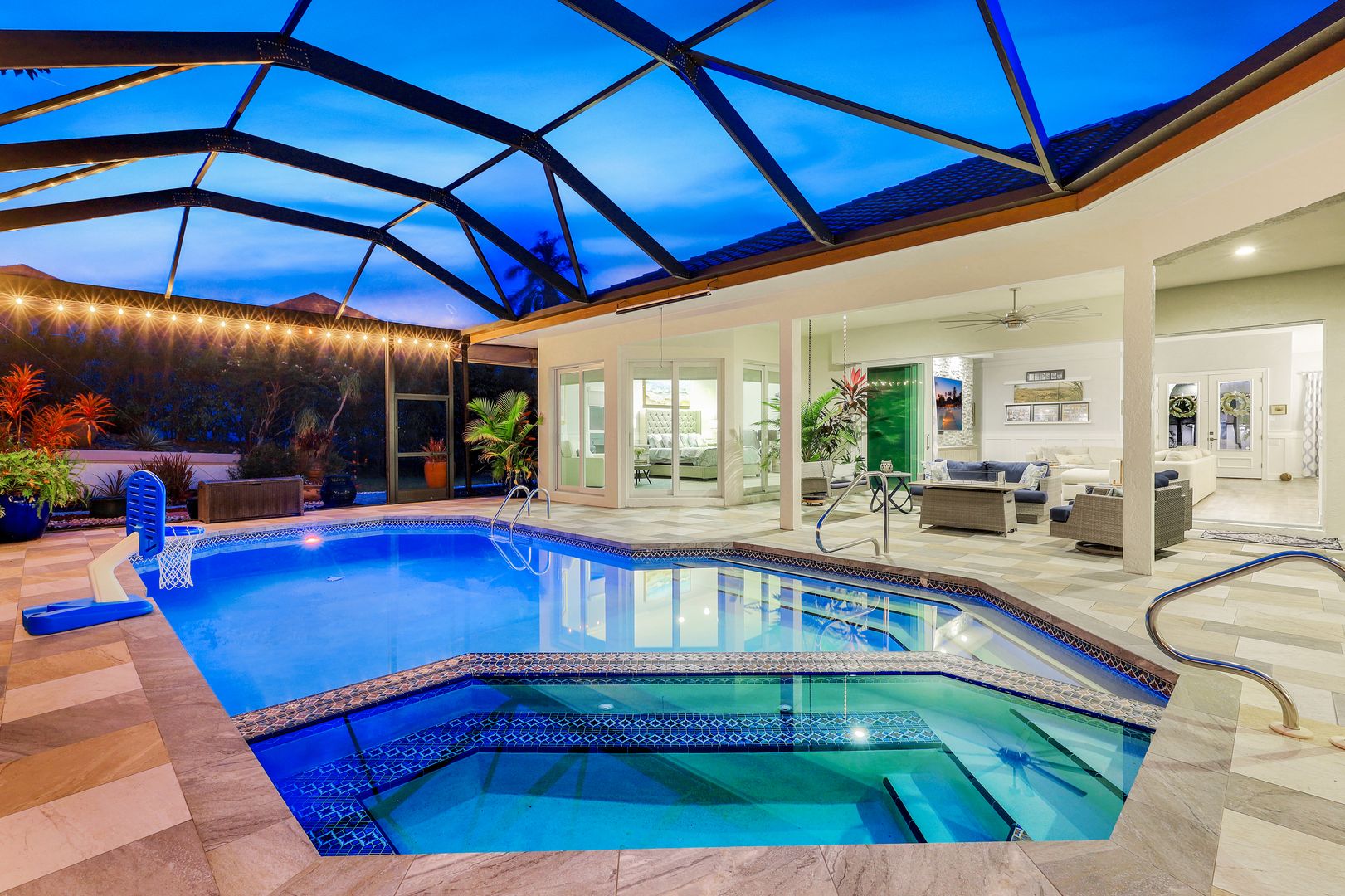 Beautifully remodeled and meticulously maintained 4 bedroom 3 ½ bath fully furnished residence in the prestigious Estates area of Marco Island. This very spacious and inviting home comes with an open concept living area with gorgeous stone wall, separate dining area and exceptional chef’s kitchen with custom cabinets, island cooktop, wall-oven, stainless steel appliances and plenty of granite countertop space. Newly updated bathrooms, front office/ bedroom, laundry room, and impact glass windows & doors. High vaulted ceilings and luxury vinyl flooring throughout for easy maintenance. The newly renovated family room with built-in electric fireplace invites relaxation. Split bedroom floor plan with master-suite retreat and closed off guest wing providing privacy for your guests. The expansive sweeping lanai is a tropical getaway in your own backyard with updated summer kitchen, large sparkling pool, spa and full bath. Surrounded by lovely new landscaping and lighting. Oversized 2 car garage and large circular driveway and extra parking. This stunning home is the perfect opportunity to start living in paradise today!