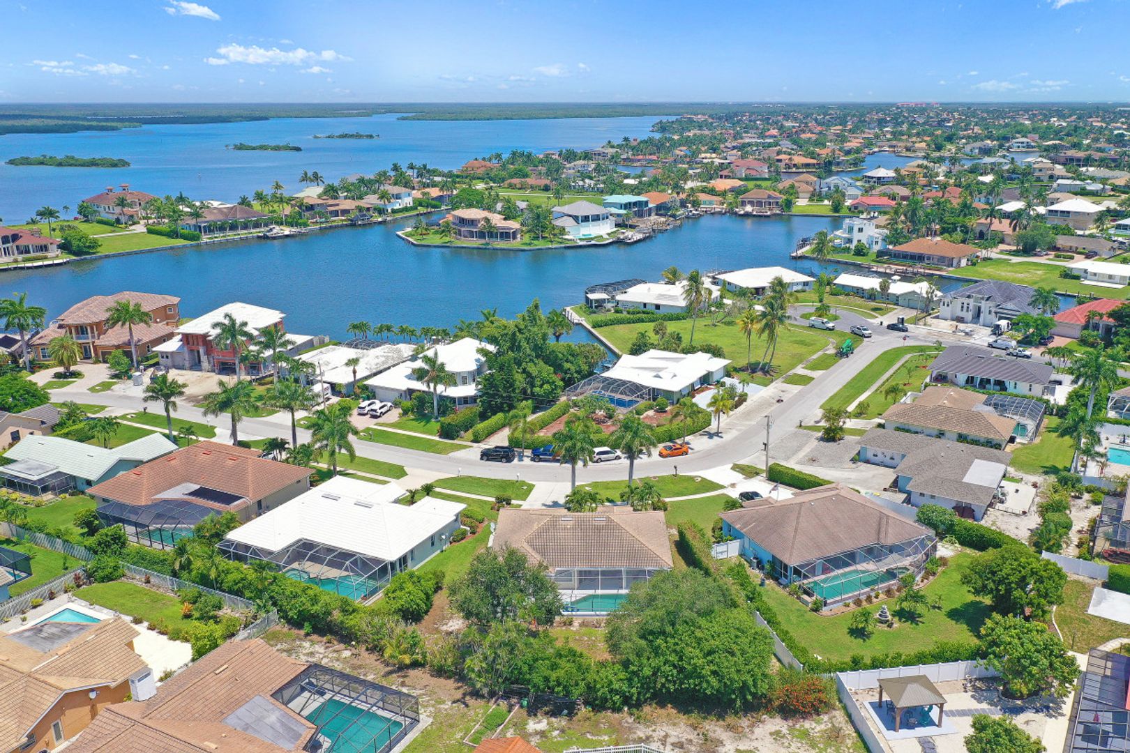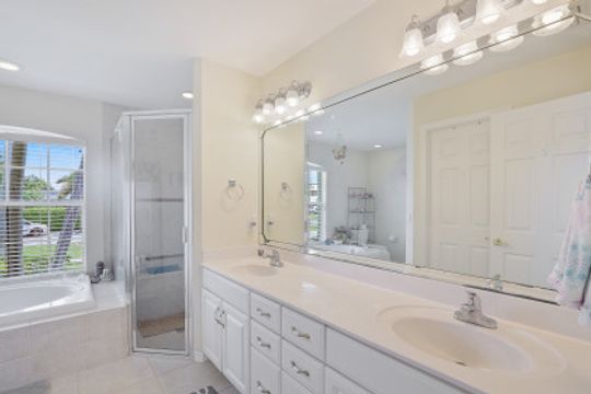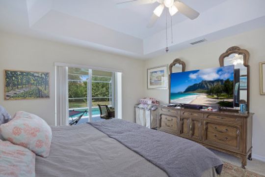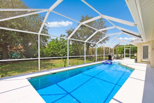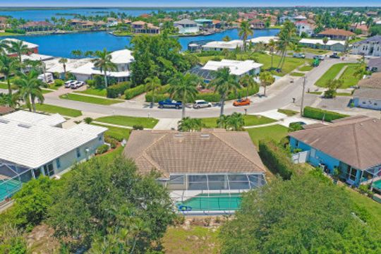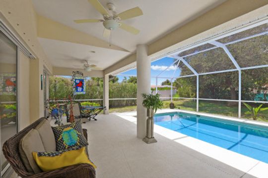 Light and bright three-bedroom home with open-concept great room and vaulted ceilings. Kitchen includes plenty of cabinets, a pantry, a breakfast bar and a separate eating area. A large screened-in lanai is perfect for relaxation or entertainment and includes a pool. Split floor plan with master bedroom en-suite that includes dual sinks, soaking tub and separate walk-in shower. Manual shutters. Located on an oversized lot with northwest exposure. Great neighborhood. Close to shopping, dining and all that Marco Island has to offer.