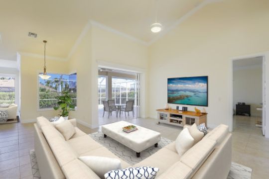 Fabulous residence nestled in the heart of the desirable Tigertail area. This 3-bedroom, 2 bath plus den features soaring ceilings, open floor plan, transom and arched windows allowing brightness thru-out. Brand new roof, hurricane shutters and recently replaced A/C and water Heater. Spacious kitchen with granite counter tops, recess lighting and an inviting covered large lanai and pool ideal to entertain and relax. The house sits on an over-sized lot with a nice backyard with fruit trees and endless possibilities to create your own oasis in Paradise. Sellers are ready to move on so the house is offered unfurnished. However, we have virtually staged some rooms for easy visualization. Close to the beach, shops and restaurants. A real gem to compliment your Marco Island lifestyle.