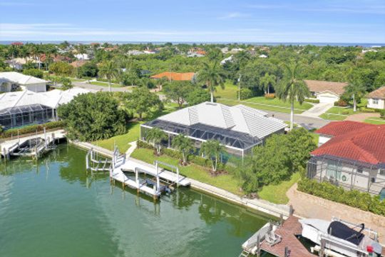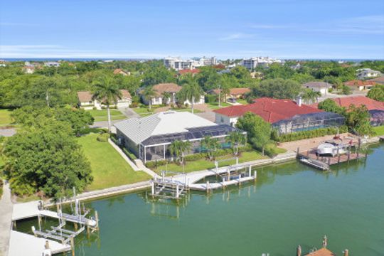 Tigertail Beach, water direct Divco built home on an over sized lot with 130 feet of water frontage, walking distance to Tigertail Beach, super fast access out to the Gulf with large u-shaped dock, 2 boat lifts. Enjoy over 2100 sq. ft. under air with 3 bedrooms plus den which is currently set up as a 4th bedroom. Large open kitchen with dinette, 4 transom windows to bring in all the natural light, high ceilings all around, crown molding, updated bath, decorated and furnished nicely. Large lanai area to enjoy the pool with a separate pool bath. Easy in and out with a semi-circular driveway and a nice size yard to enjoy outdoor living to the max!