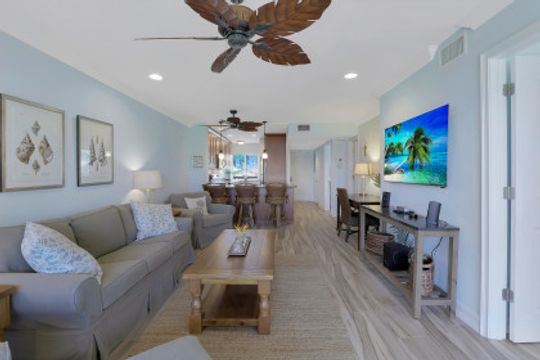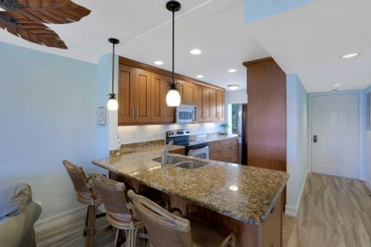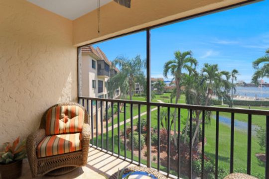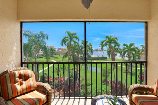 Relaxing and soothing wide water views and magnificent sunsets are yours to enjoy from this completely and beautifully renovated 2 bedroom - 2 bath condominium. Nestled in the desirable Smokehouse Bay area of the island, with boat docks available for lease, close to shops, restaurants and just minutes from the famous Marco Island beach. This lovely residence features a classic and functional kitchen with custom made cabinets, stainless steel appliances, granite counter tops, perfect to entertain, cook, dine or just enjoy that Happy Hour drink. Tile thru out, crown molding, recess lighting, window treatments and washer & dryer. High impact windows add tremendous value and give you extra piece of mind. So just sit down on your lanai, watch the boats go by, listen to the singing birds or just be mesmerized by the beautiful tropical scenery. This is a true gem in Paradise!