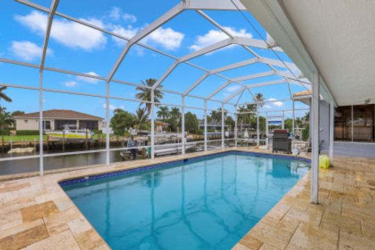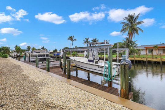 This nicely updated, waterfront home is a boaters dream home! The home boasts a nice addition, spacious pool, new seawall (2012), quick indirect access to the Marco River, two lifts (8,000 lbs and 12,000 lbs (2012)), spacious water frontage (149'), expansive outdoor entertaining areas, and freshly painted inside and out. Split floor plan with master suite on one side of home and 2 guest bedrooms on the other. Open kitchen and living room overlooking spacious outdoor entertaining for large gatherings of family and friends. The perfect move-in, r3eady home for the boater looking for quick access to the Marco River with one of his many water toys.
