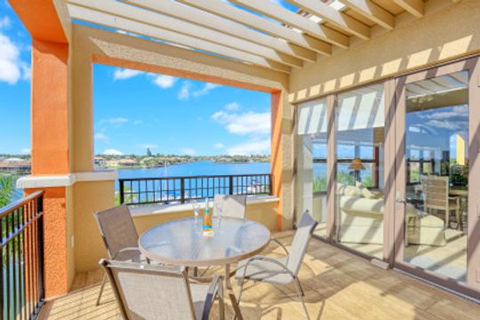 Stunning, forever panoramic water views from this gorgeous corner Penthouse nestled in the desirable Esplanade in the heart of Marco Island. This spacious