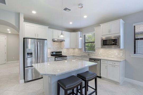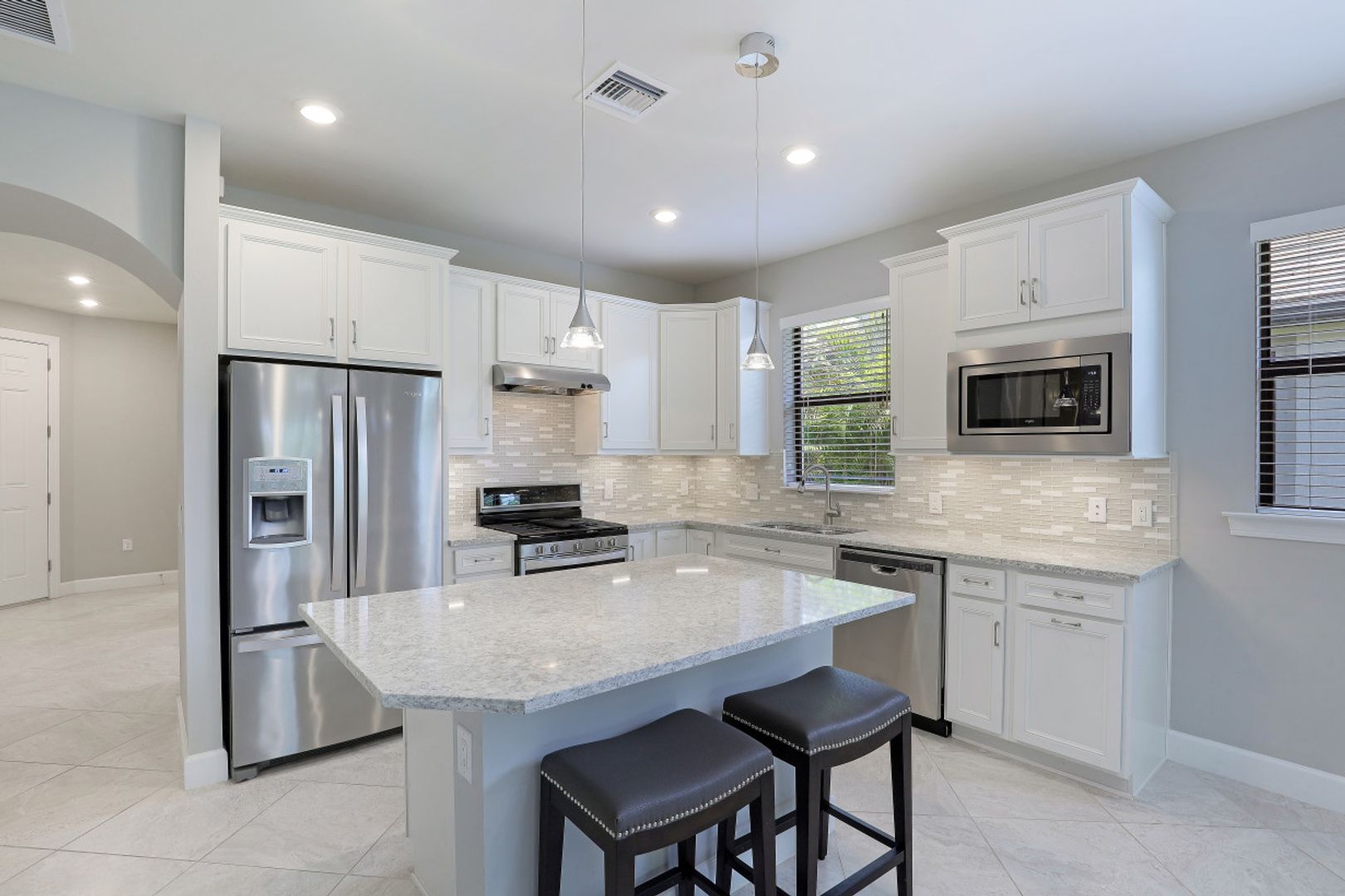 RARELY AVAILABLE CRESSIDA MODEL! Come see this 1579 sqft attached villa located in the gated community of Winding Cypress! This 2 bedroom + den, 2 bath home features a two car attached garage, paver driveway, open concept floorplan and tile throughout the main living area. The light and bright living area provides direct lanai access and is open to the dining area and kitchen that boasts a suite of stainless steel appliances, quartz countertops, white cabinets with upper crown molding, custom backsplash and breakfast bar. The owner’s suite provides California closet additions in the walk-in closet, as well as a private ensuite with a tiled walk-in shower and dual sinks. 1 more bedroom, 1 full bath and a den complete this beautiful home. The Eastern facing lanai gives you landscaped views and offers a space to host gatherings or simply relax and enjoy the Florida weather. The lanai is also plumbed for an outdoor kitchen which would make a great addition! Winding Cypress is a natural gas community and boasts many amenities that include a community pool and fitness center, all while being conveniently located between 5th Avenue, Marco Island and I-75!
