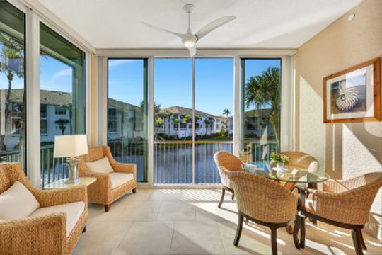Experience the best of Naples’ resort lifestyle in this beautifully renovated, light-filled end-unit at Breakwater in Pelican Bay. Perfectly positioned with southern exposure and expansive lake views, this stunning three-bedroom home combines coastal chic with modern sophistication. Step inside to discover a reimagined open-concept great room floor plan bathed in natural light, highlighted by 10-foot ceilings with crown molding, walls of plantation shuttered windows, and large-format designer tile flooring that adds continuity throughout the home. Serving as a centerpiece, the custom-designed kitchen features exquisite soft-close light wood cabinetry, quartz countertops, and a classic subway tile backsplash, creating a stylish haven for both casual and formal entertaining. Off the kitchen is a flex space that could be personalized as a casual dining area, reading nook, or home office. The great room flows naturally into a sun-filled Florida room with floor-to-ceiling impact rated sliding glass doors, extending the living area and inviting the outdoors in. Savor morning coffee as birds glide across the water or unwind in the evenings beneath a canvas of breathtaking sunset skies. Distinctive features include motorized Hunter Douglas sun shades, electric storm shutters, and custom closet built-ins, combining style with effortless functionality. The oversized two-car garage is the finishing touch that brings both practicality and prestige to this exceptional residence—an uncommon luxury in Pelican Bay. Breakwater amenities elevate everyday living with a gated entrance, clubhouse with pool and spa, and social and exercise rooms, all set along charming brick-paver streets. Pet owners will delight in Breakwater’s pet-friendly environment, a true rarity in Pelican Bay. Residents also enjoy the preeminent Pelican Bay lifestyle, including two private beachfront restaurants, miles of pristine Gulf beaches with exclusive access, canoeing and kayaking on picturesque Clam Bay, two tennis centers, pickleball, a state-of-the-art fitness and wellness center, and optional memberships at Club Pelican Bay. Conveniently located just minutes to Mercato and Waterside Shops' vibrant dining and shopping scene as well as Artis—Naples offering a premier cultural experience, featuring world-class music, visual arts, and performances as the home of The Baker Museum and the Naples Philharmonic.