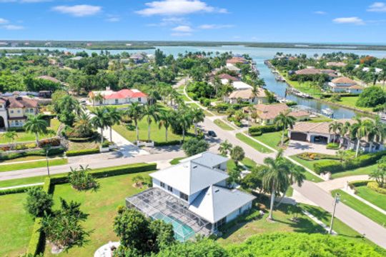Welcome to Casa Blanca. This gorgeous completely renovated two-story residence is a must-see. Located in the sought-after estate section of Marco Island on a large corner lot, this home offers plenty of room for guests with six bedrooms and three half-baths. Enter into a spacious light and bright open great room with soaring ceilings and recessed lighting that transitions into a chef’s dream gourmet kitchen with center island, custom cabinets, updated appliances, a breakfast bar and separate dining area. The sprawling master suite is located off the main living area, has private access to the lanai, and comes complete with a walk-in shower, dual sinks and vanity area. Upstairs offers five additional spacious bedrooms. The expansive screened lanai is a retreat in itself with a sparkling saltwater pool, covered shaded area and is a great place to soak up the sun or enjoy a BBQ. The best feature is the backyard fire pit surrounded by detailed lush landscaping for added privacy. New metal roof 2020. Newer pool pump 2017. Circular drive and three-car garage. This is the perfect home for entertaining or investment property. Agent related to owner.