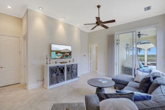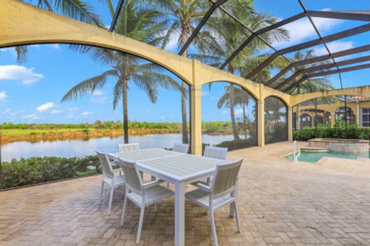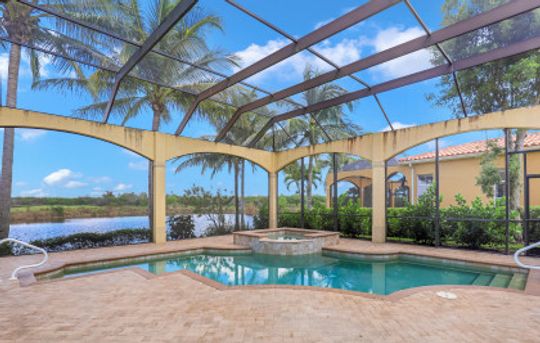 You’ll love this stunning LAKE FRONT home, located in the desirable community of Bellagio at Fiddler’s Creek! This TURNKEY 3 bedroom, 3.5 bath, 2977 square foot home is move-in ready. Features include a new roof, newly sealed brick pavers around the pool, crown molding, plantation shutters, tile throughout the main living area, and a breathtaking foyer w/ custom ceiling detail and French door entry. The bright and airy living space gives you direct outdoor access, and is overlooked by a gorgeous eat in kitchen with granite counters, breakfast bar, custom appliances, upper crown molding on the cabinets and adjacent formal dining room. The master bedroom also provides direct pool access, as well as your own private ensuite complete w/ dual vanities, tiled walk in shower, and separate soaking tub. Both additional guest rooms offer private bathrooms as well! The massive deck is perfect for entertaining guests, or simply taking in the peaceful golf course views from your sparkling pool. Fiddler’s Creek also has plenty of amenities to enjoy, such as a clubhouse, community pool/spa, fitness center, golf course, marina and so much more.