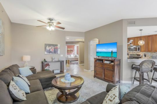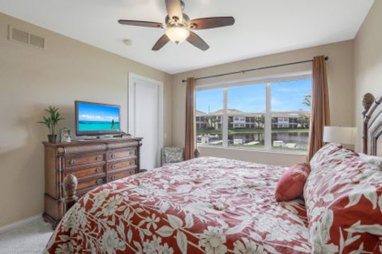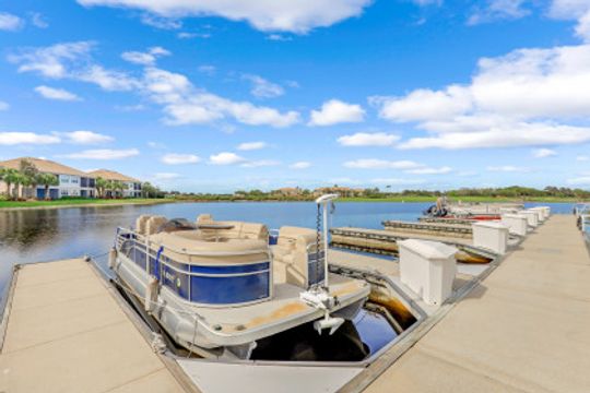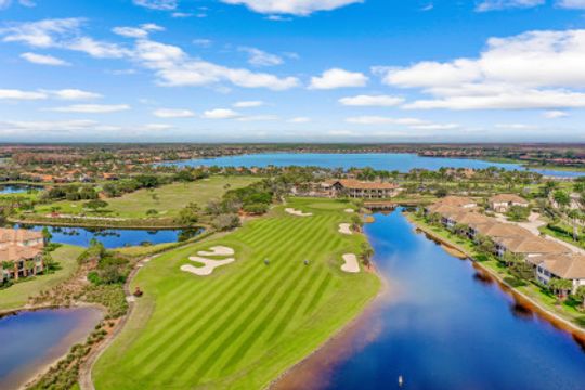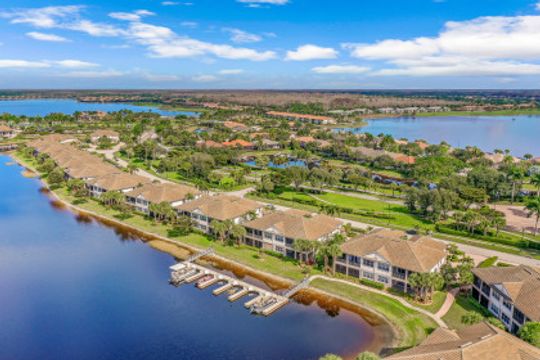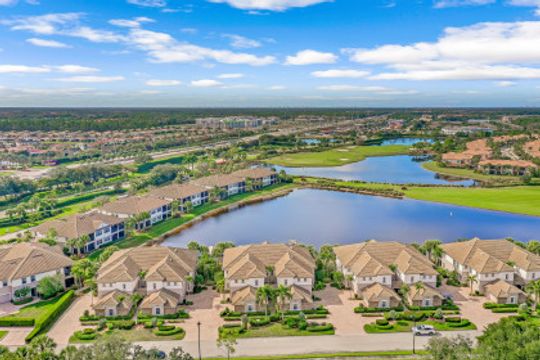 IT'S ALL ABOUT THE VIEWS AND GORGEOUS NAPLES SUNSETS AT THIS PERFECT VACATION GETAWAY! This 2 bedroom plus den/home office, 2 full bath, 2 car garage 1st floor Coach Home has breathtaking western views of the navigable canal and golf. The kitchen is light and bright and features eat-in kitchen with stainless steel appliances. Additional fine appointments include tile flooring in main living area, hardwood flooring in den/office plus newer carpeting in the bedrooms. The outdoor spacious screened lanai has been recently tiled. NEW ROOFS in 2018 and exterior painting of buildings have been completed! It is a "must see" to appreciate the finishing touches! The Quarry is a gated lakefront community offering 500 plus acres of lakes for boating, skiing, paddle boarding, jet skiing, and fishing. Additional amenities include Tennis, Pickleball, Bocce Ball, a Tiki Bar, Restaurants, Pool-side food/drink Service, Fitness Center and a full-time Activities Director. A $15M Expansion Project of the Lake Lodge & Beach Club is coming soon! The Golf Lodge & Golf Club offers an 18 hole PGA Level Hurdzan Frye Golf Course and its own recently updated clubhouse, dining room, and grill room. (Membership Optional.)