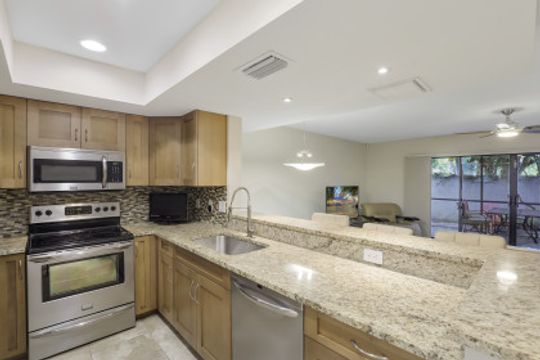 Welcome to your home away from home conveniently located just steps to The Mercato, and 1.5 miles to the white sandy beaches at the Gulf of Mexico-North Naples world famous Vanderbilt Beach! This 1 full car garage home lives like a town home with living area downstairs, and 2 (could be) Master Suites up! Currently, the 2nd master suite is a loft with its own full bath and closets, as some owners have put up a wall, or partition if a second suite is needed- Or use it as a loft/TV room as well. Washer and dryer are also on floor 2. This unit offers a very private outdoor living space and screened in Lanai, and situated 2 doors away from the pool! You can rent the property out, 12 times per year/30 day minimum. See our video tour online with an overview of the area, walk through the home and more info on location and Naples overall.