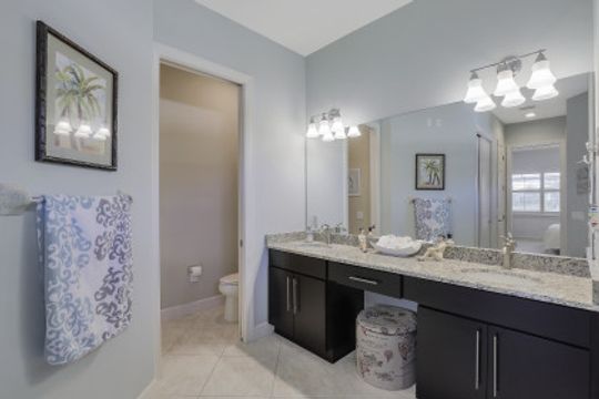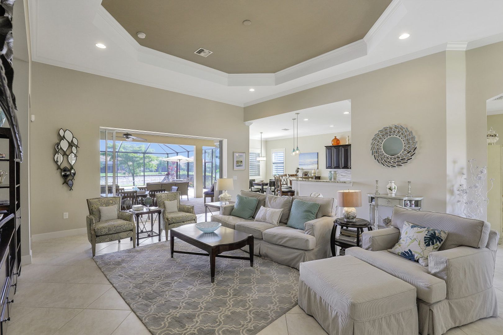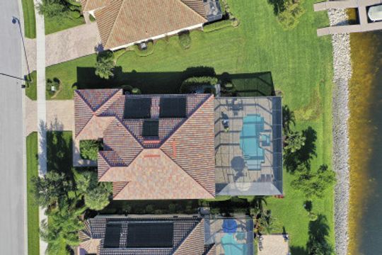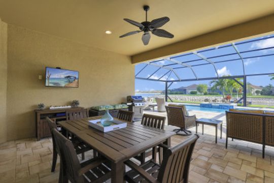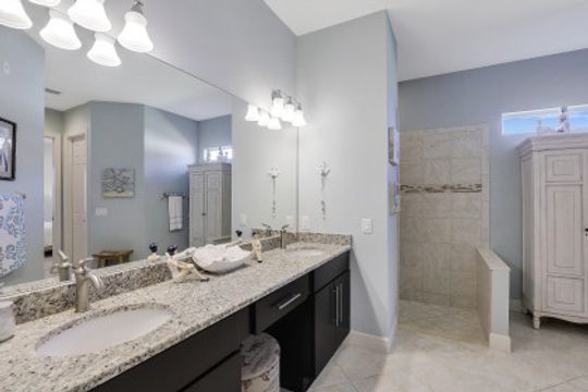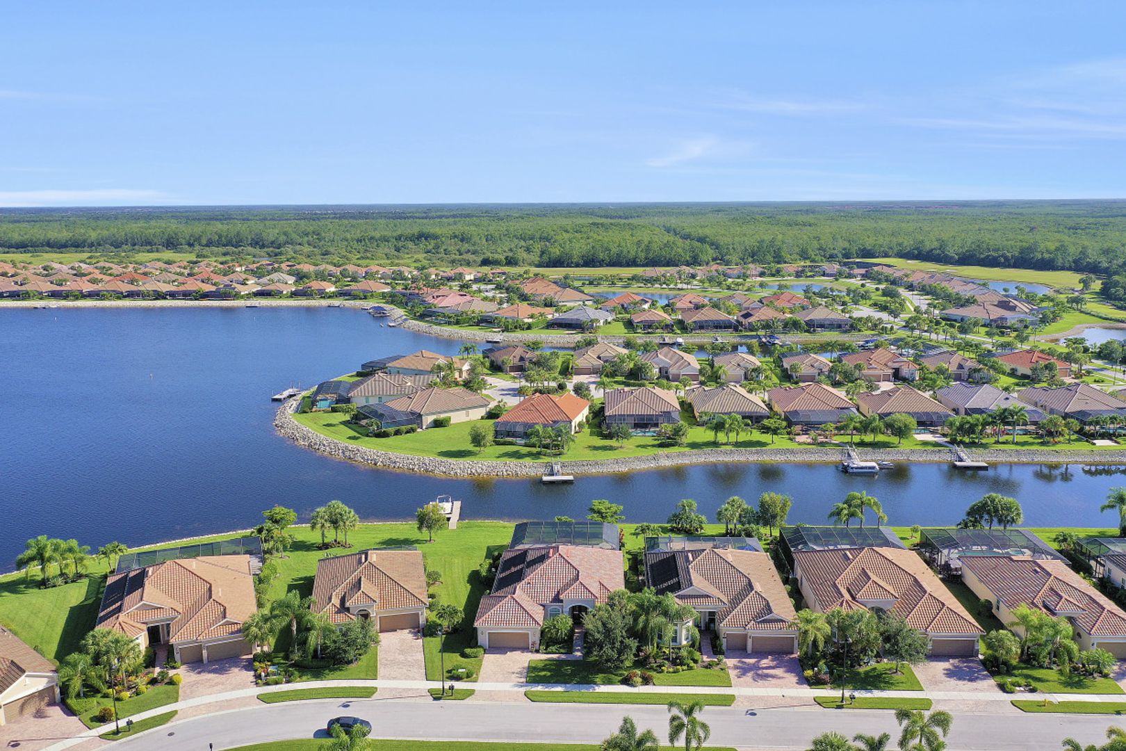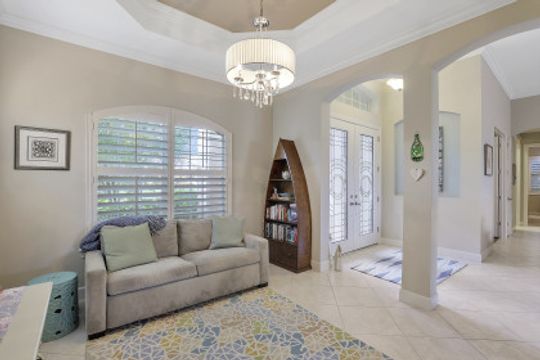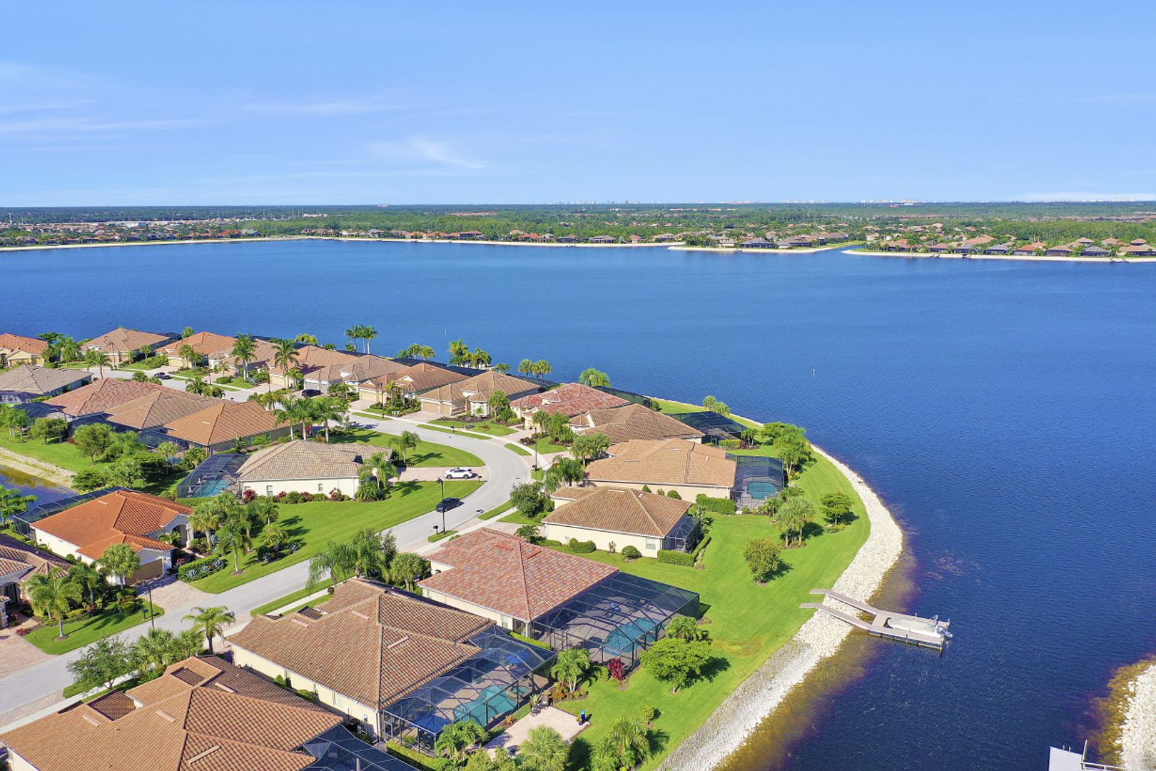 IT'S ALL ABOUT THE MILLION DOLLAR VIEW AND GORGEOUS SUNSETS! This 3 bedroom plus den, 2 bath, 2 car garage open floorplan Barrington I model is in pristine condition. It's many upgrades includes 20" porcelain tile on the diagonal, upgraded kitchen cabinets, upgraded stainless steel appliances, granite countertops, Kinetico water filtration system, plantation shutters and crown molding throughout. The 3rd bedroom is suitable for a home office with wood flooring and double door entry. Also a custom solar heated pool (34x14) with an in-floor cleaning system, extended lanai enclosure and large picture windows, plus much more! A NEW ROOF and Lanai enclosure was installed in 2019. Being on the canal, a dock can be added for access to the freshwater lake. Enjoy a Vacation Lifestyle at The Quarry which is a Gated Lakefront community offering Boating, Golf, Tennis, Pickleball, Bocce Ball, Tiki Bar, Restaurants, Pool-Side Food/Drink Service, Gym, Social Activities and more! The Quarry has 500 acres of lakes that can handle boats and jet skis. The Quarry offers a Private Golf Club which is optional with 18 holes - PGA Level Hurdzan Frye course.