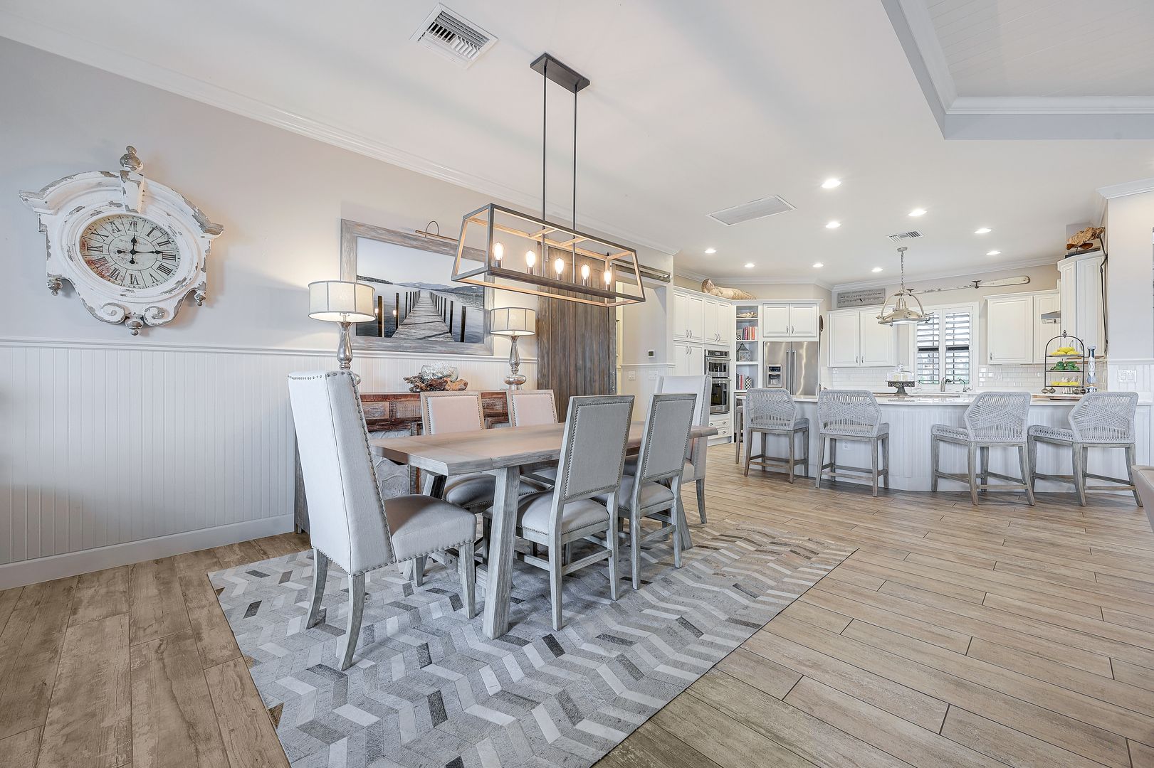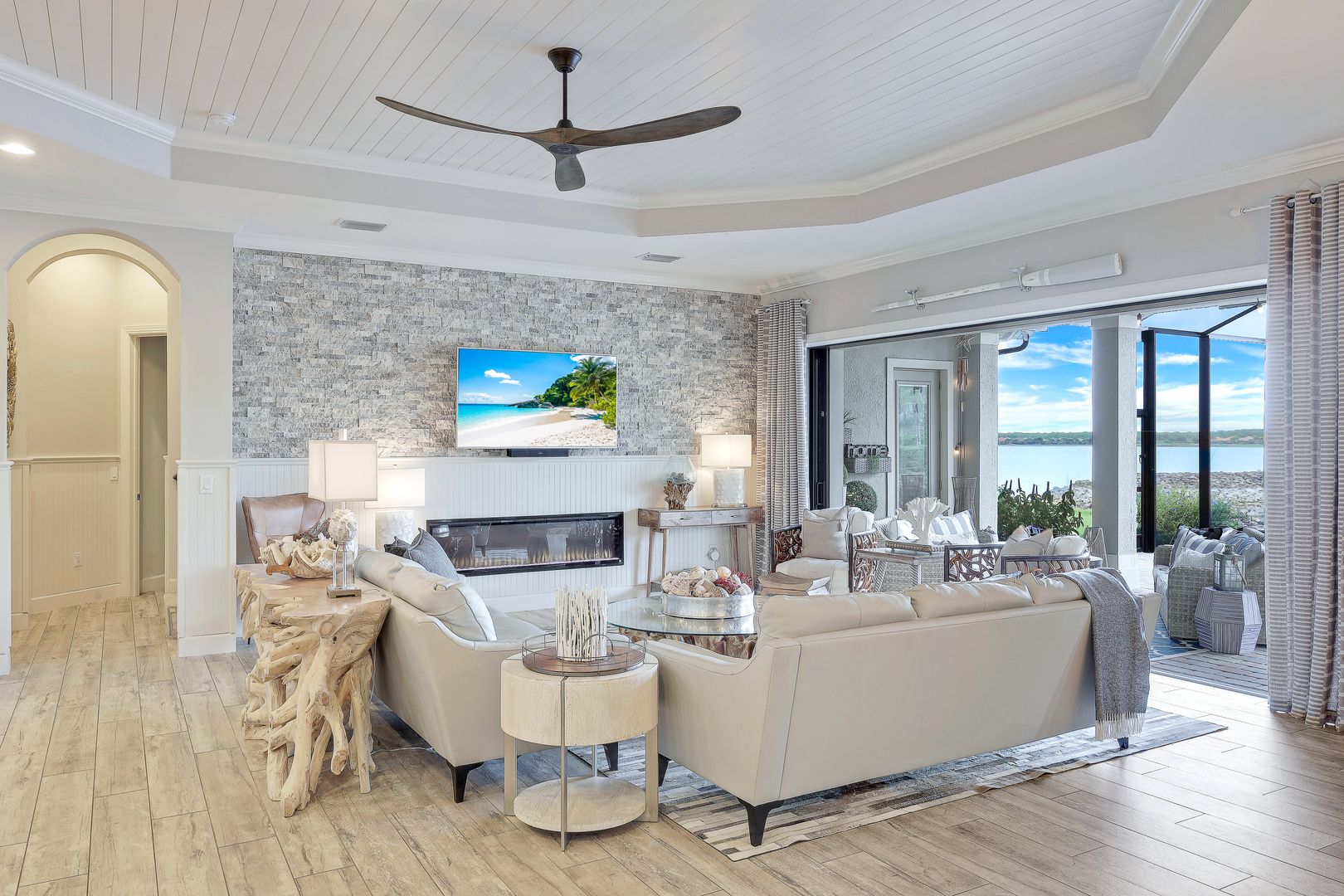 This rare “Kensington” model home (one of only two) is professionally decorated and is being sold FURNISHED. It features 4 bedrooms, 4 full baths, a den and 3 car garage. The 2nd floor can be used as a guest suite (4th Bedroom) home office or game room. This home shows like a model and is situated on a large lot with NAVIGABLE LAKE ACCESS AND A PRIVATE DOCK! The lanai features a new (2022) saltwater pool with water features, and an outdoor kitchen. Relax in your 2nd floor balcony hot tub while taking in the view. Fine appointments include tile wood look floors, crown molding, wainscoting, quartzite countertops in the kitchen, feature wall in the great room with a fireplace, plantation shutters, impact windows and doors plus more! A "must see" to appreciate the finishing touches!The Quarry is a an amenity rich gated lakefront community offering over 500 acres of lakes for boating, water skiing, paddle boarding, jet skiing, kayaking, and fishing.The Beach Club includes Tennis, Pickleball, Bocce Ball, a Tiki Bar, Restaurant, Pool-Side food/drink service, a Wellness Center, and a full-time activities director.The Beach Club is undergoing an $18 million Expansion Project (Dec 2023.)