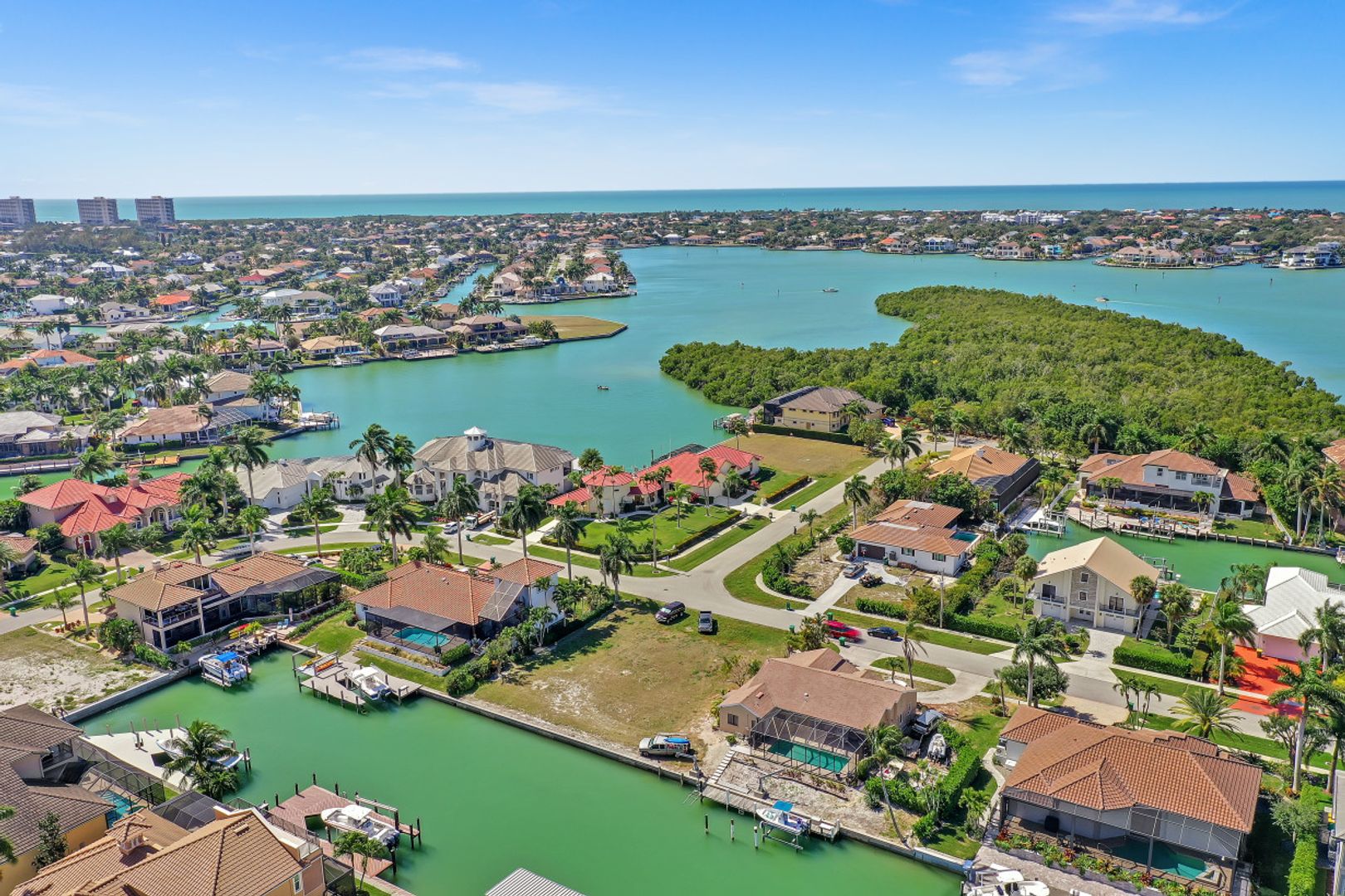 Spectacular water direct lot located in one of the most beautiful and highly-desired neighborhoods on Marco Island. Eastern exposure with 100 feet of waterfront. Surrounded by many luxurious homes. Offering quick access to prestigious Collier Bay and out to the Gulf of Mexico. A perfect place to build your tropical dream home with plenty of space for a three car garage, pool and deck. Close to dining, shopping, restaurants.