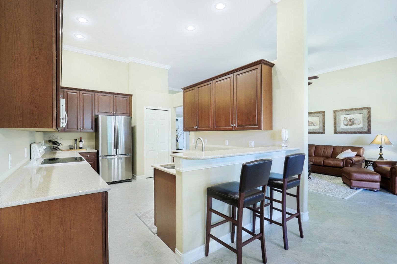 Welcome home to this meticulously kept, turn-key, 2nd floor Triana Carriage Home with a private elevator! Set among immaculately polished grounds within the private Luxury Golf Community of Renaissance, this rarely available floor-plan won’t be available for long. You will find an interior that flows effortlessly from the spectacular open living space to the generously sized screened in lanai. The inviting outdoor space offers you first class Florida living, with serene views of a nature preserve and beautiful landscaping. The kitchen boasts beautiful quartz countertops, plentiful counter space and large 42” wood cabinetry! Other notable features include: light neutral tile flooring laid diagonally throughout the main living spaces, perfectly kept carpeting in the bedrooms and office, soaring high ceilings, TWO Master Suites, ample storage and extremely convenient Private elevator. This home offers the very best of the Southwest Florida lifestyle, and is ready to be enjoyed!