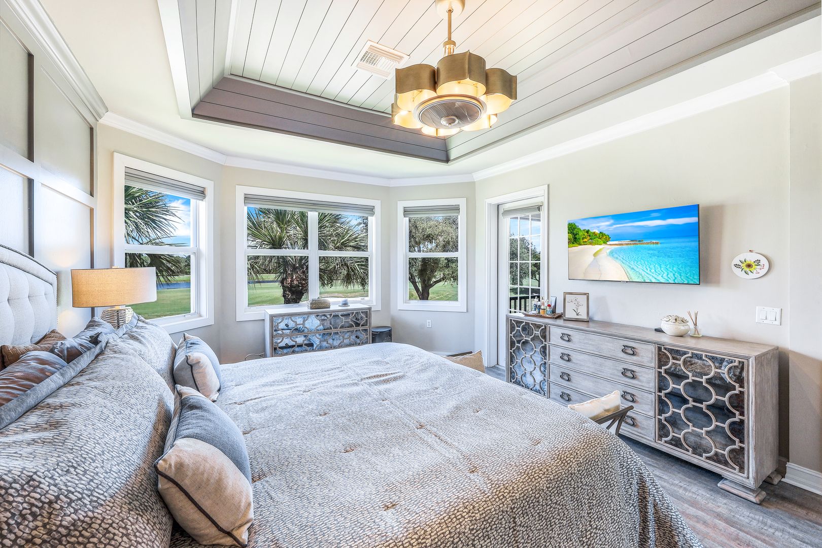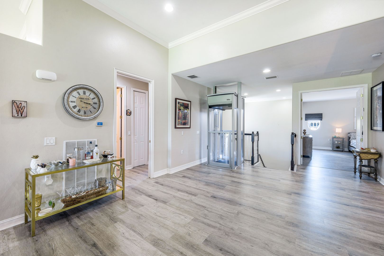Welcome to this immaculate, furnished, 2nd floor Carriage Home located in the Triana neighborhood of Renaissance! Completely redesigned with coastal contemporary finishes. This home boasts an open interior that flows effortlessly between the living space and the generously sized screened lanai. Enjoy new luxury vinyl flooring throughout, beautiful matte finish granite kitchen countertops, new stainless steel appliances, 42” light wood kitchen cabinetry and a new stiltz custom elevator! Each bathroom has been thoroughly re-imagined with beautiful new tile flooring, new cabinetry, gorgeous fixtures, quartz countertops, and exquisite new shower tile. Additional notable features include gorgeous modern shiplap and feature wall, soaring high ceilings, TWO Primary Suites, and updated lighting fixtures. The outdoor space gives you the best of Florida living, with gorgeous views of the lake and Hole #1 of the Arthur Hills Championship Golf Course. The Renaissance lifestyle includes an Arthur Hills Championship Golf Course, resort style pool and pool pavilion, children’s play area, full service spa & fitness center, 6 red clay tennis courts, 2 pickle ball courts and 2 bocce courts.