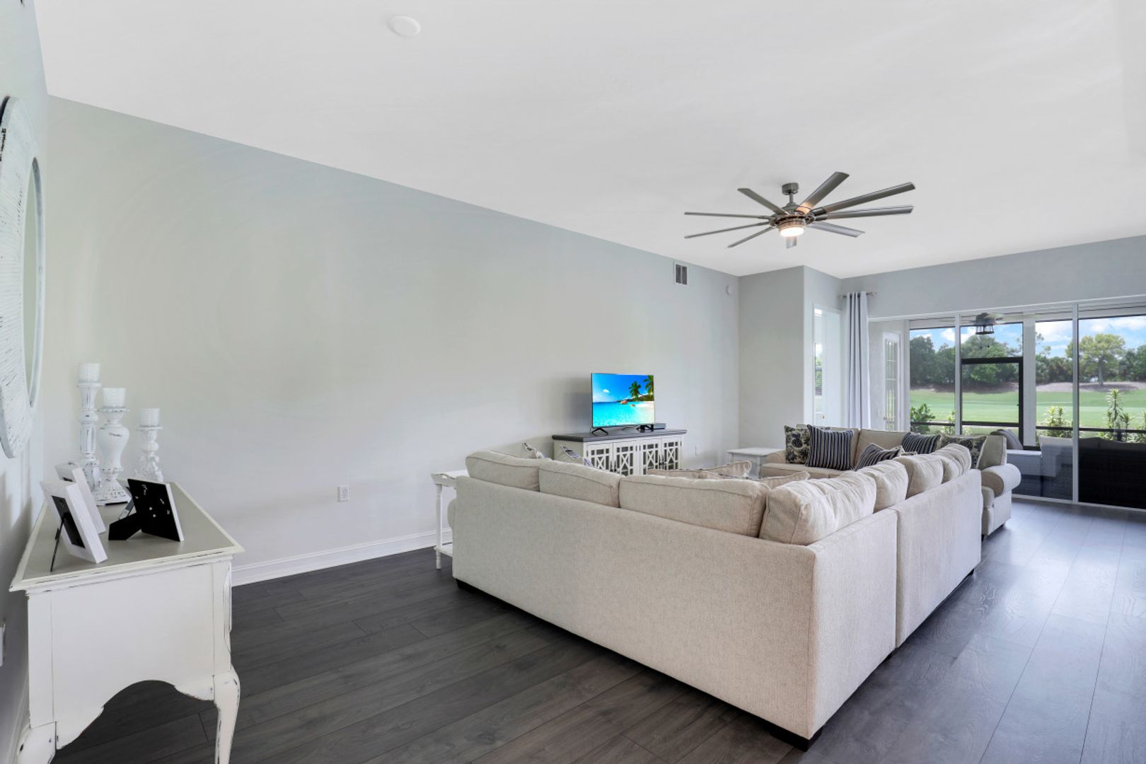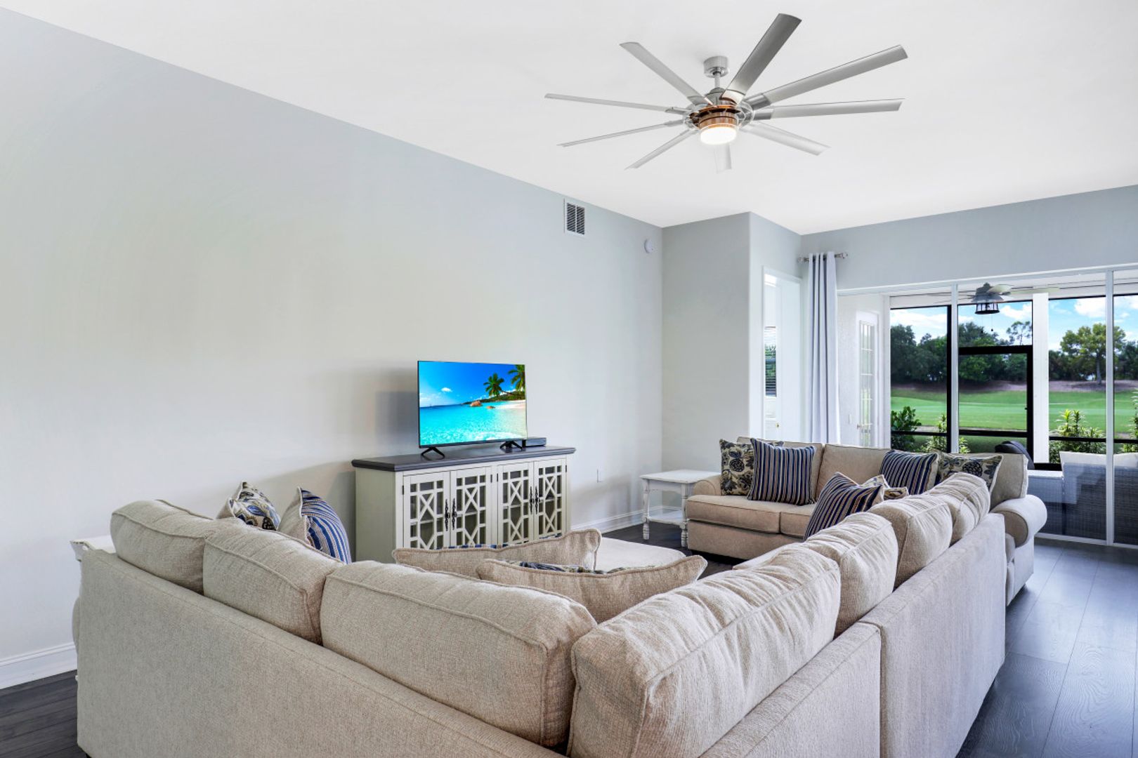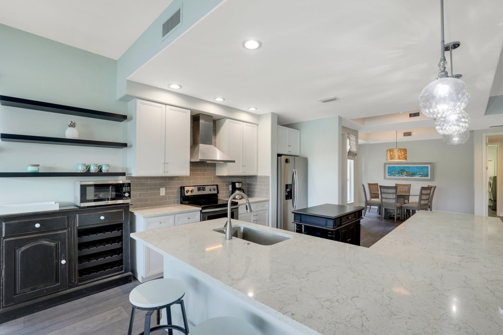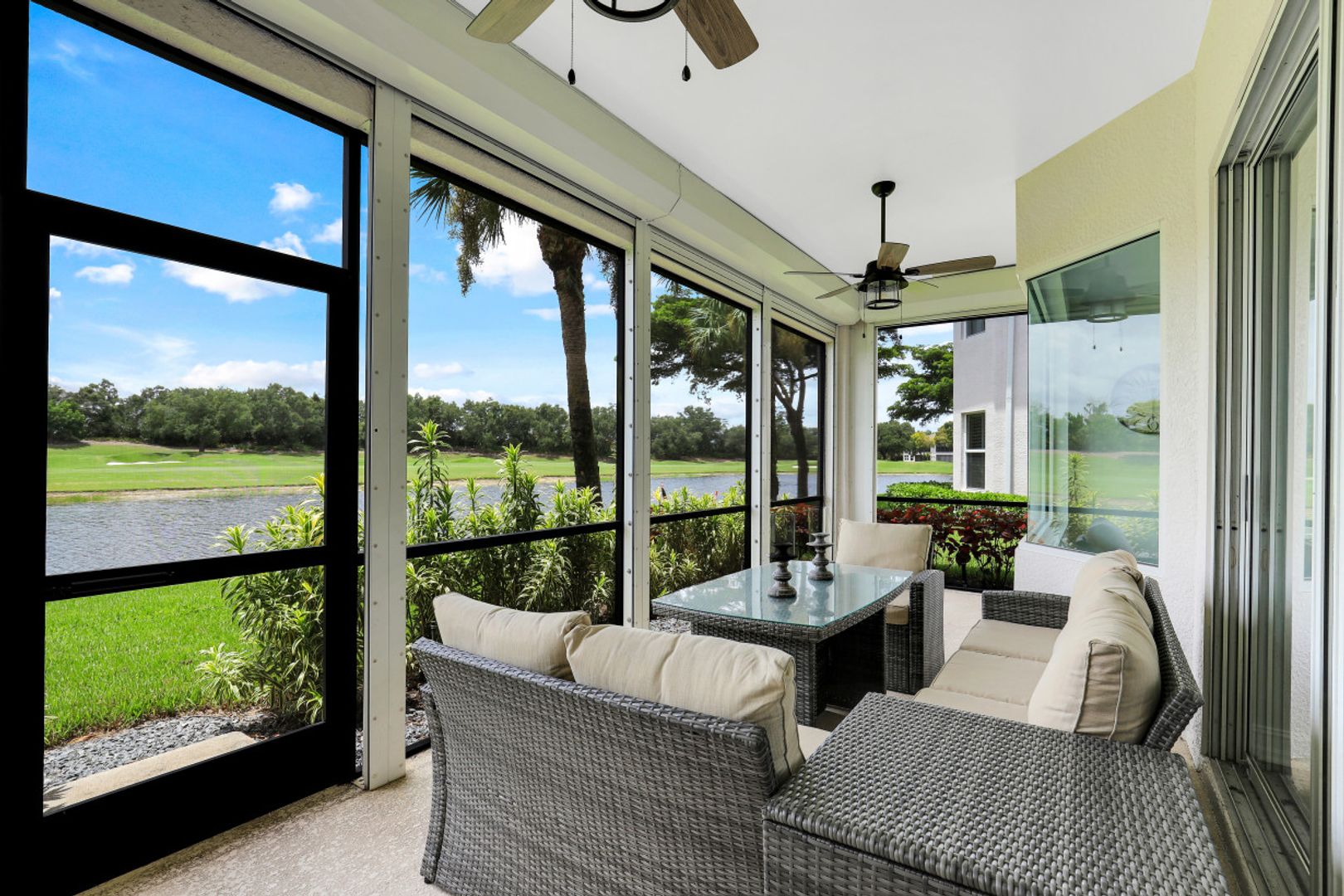 Welcome to this beautiful, re-imagined first floor Carriage Home located in the Triana neighborhood of Renaissance! Offered turnkey, this 3 bedroom + 2 bathroom home has been redesigned to create a modern, open floor plan. Enjoy a beautiful kitchen with quartz countertops and an oversized island offering ample seating for gathering and entertaining. You will love the Swiss Krona luxury vinyl flooring throughout each room, and the large sliding doors and oversized breakfast nook window allowing for abundant light to flow in. A wonderful opportunity to own your very own piece of paradise in the sought after community of Renaissance! Renaissance is a low density, luxury golf community located at the Daniels Corridor in Fort Myers, FL. The Renaissance lifestyle includes an Arthur Hills Championship Golf Course, resort style pool and pool pavilion, children’s play area, full service spa & fitness center, 6 red clay tennis courts, 2 pickle ball courts and 2 bocce courts.