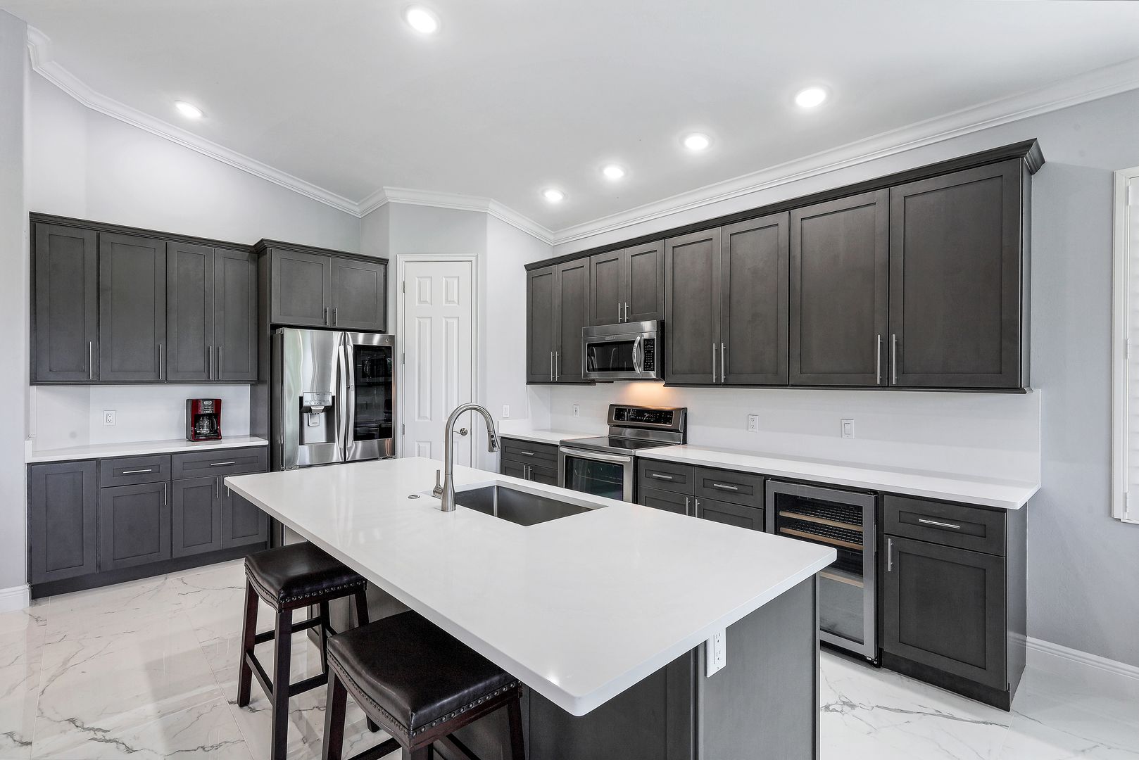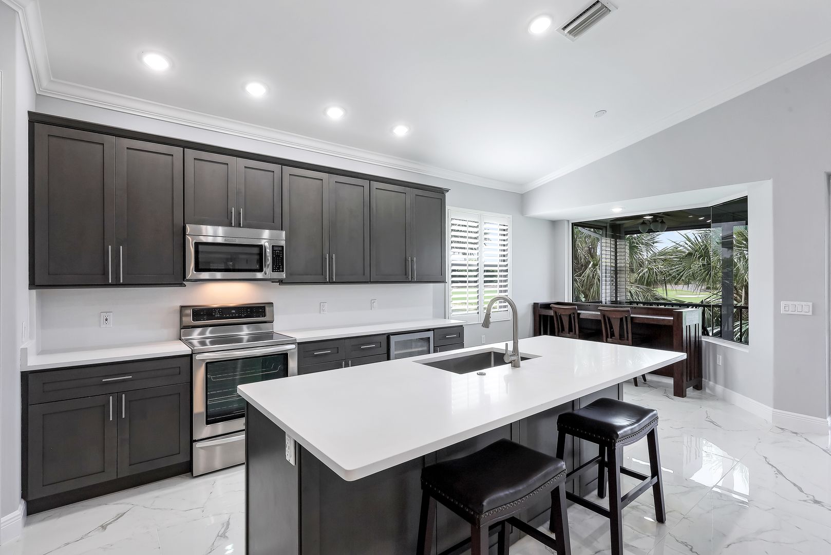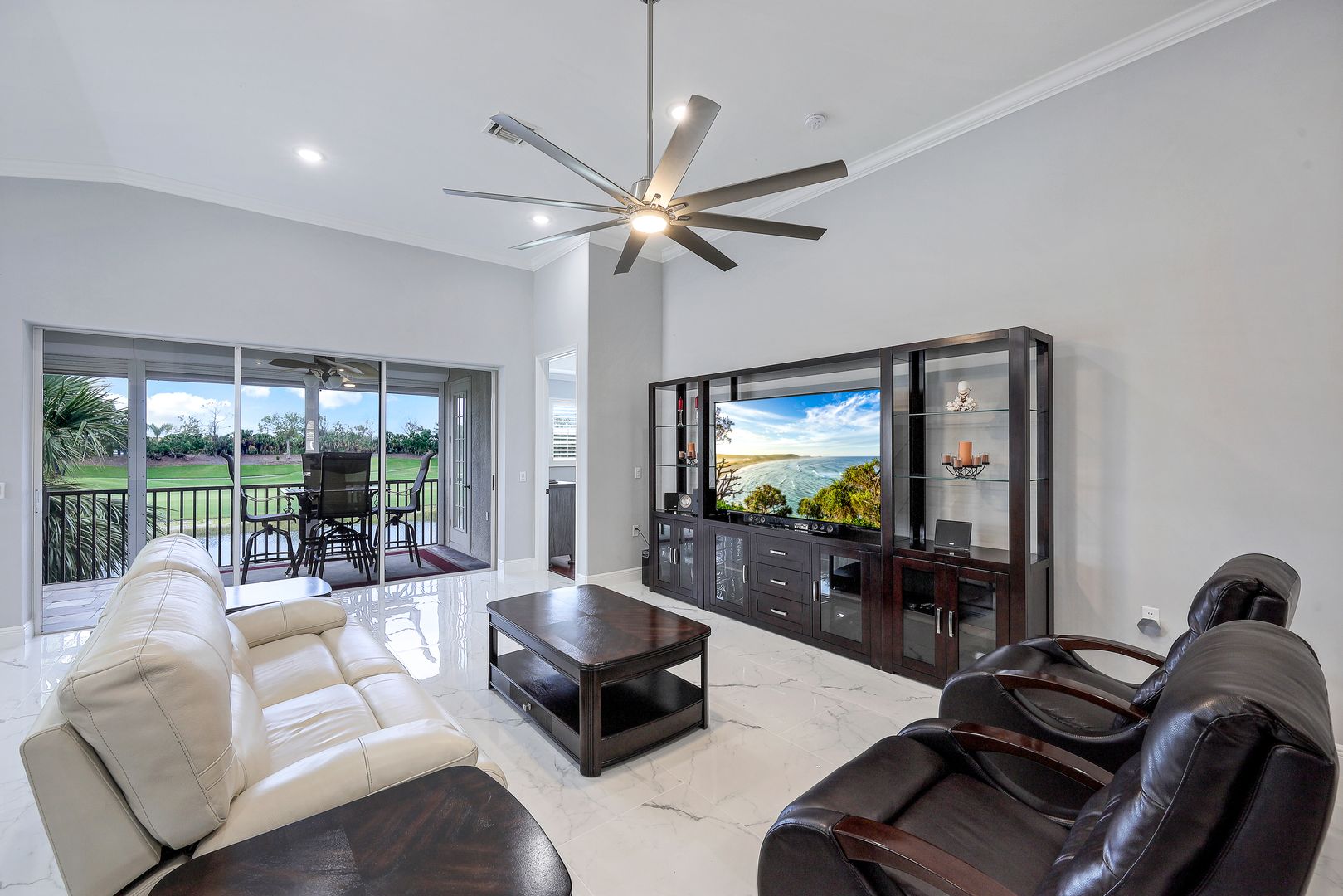 Welcome to this wonderfully updated Carriage Home in the Triana neighborhood of Renaissance! Beautifully redesigned with a modern vision, you will find thoughtful and quality details throughout. This popular open floor-plan is being offered Turnkey furnished and features 3 bedrooms, den, media room, 2 bathrooms and a private elevator. The upgraded kitchen features quartz countertops, shaker cabinets and stainless steel appliances. Enjoy gorgeous, large porcelain tile that sets the tone for a luxurious feel throughout the home. Your indoor space flows seamlessly onto your private screened-in lanai with views of the lake, golf course and sunsets. The Renaissance lifestyle includes an Arthur Hills Championship Golf Course, resort style pool and pool pavilion, children’s play area, full service spa & fitness center, 6 red clay tennis courts, 2 pickle ball courts and 2 bocce courts.