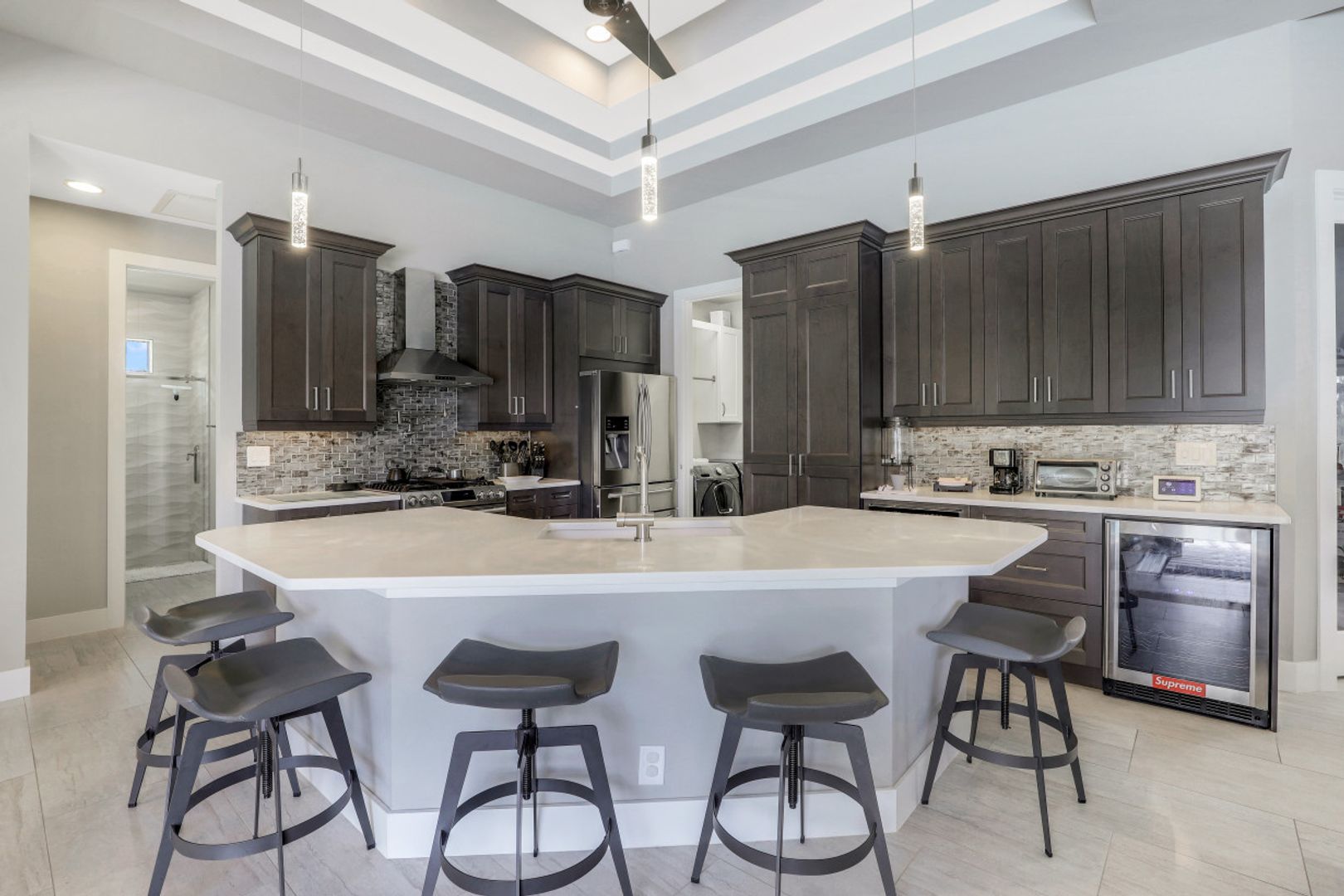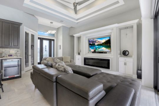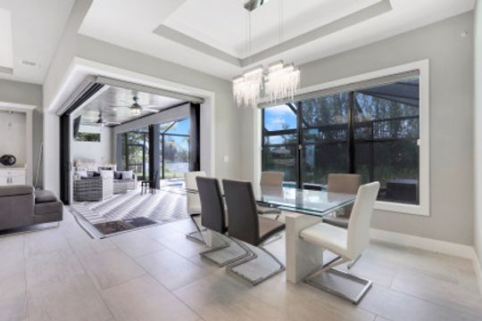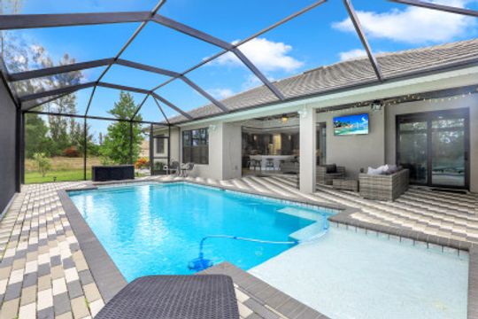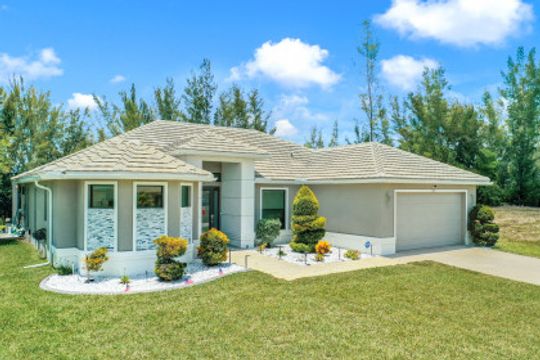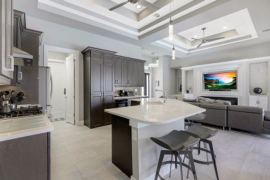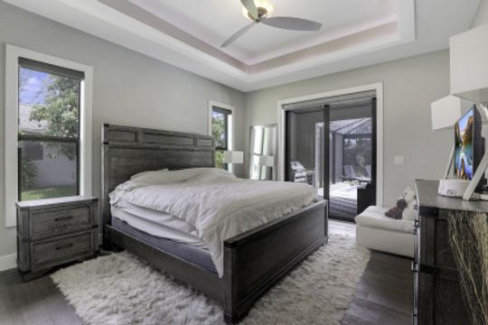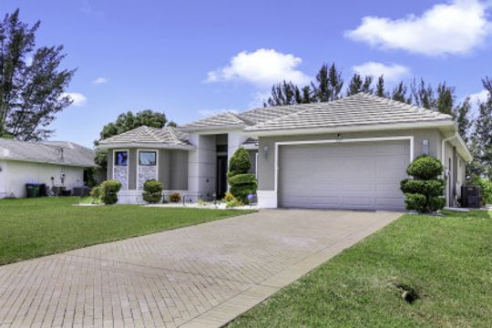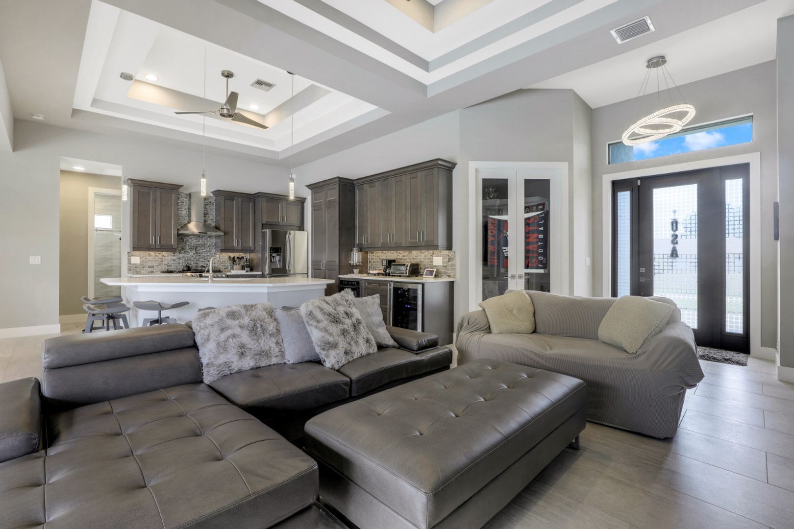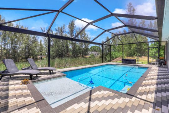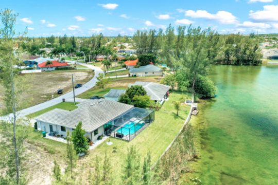 WATERFRONT POOL HOME w/BASIN VIEWS! Upgraded to the max, NOTHING held back on this one! Open floor plan w/over 1800 sqft, 3BR+DEN, 2BA & 2 Car Garage w/split bedrooms & soaring 12 & 14 ft ceilings throughout! Great room has 90 degrees pocket sliders & custom built entertainment center w/lighting & storage! The kitchen features quartz counters, stainless appliances, Samsung propane stove, 42" Cabinets, crown molding, awesome hidden walk in pantry & soft close cabinets. Owners suite has trey ceilings, private sliders to the lanai, dual sinks, walk through shower w/rain shower head, elegant freestanding tub & spacious walk in closets. The outdoor living includes 12 X 28 pool w/sun shelf, summer kitchen w/sink, grill, refrigerator, deck jets & picture window screened lanai. Other upgrades include: 50 gallon propane tank, security cameras & ring doorbell, IMPACT WINDOWS & DOORS, travertine & wood plank tile, epoxy garage, custom window treatments w/remotes & MORE! Enjoy everything that SW FL has to offer - boat, sail, kayak, SUP, jet ski, fish or simply take a dip in your private oasis! White sandy beaches & world class fishing can be at your fingertips-schedule your private tour!
