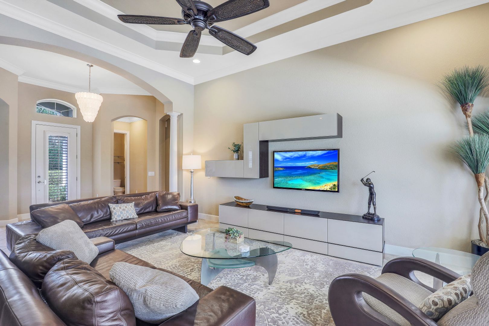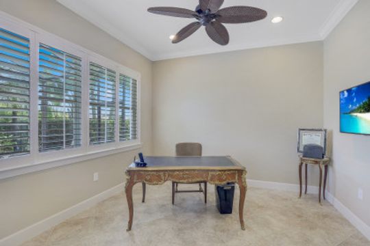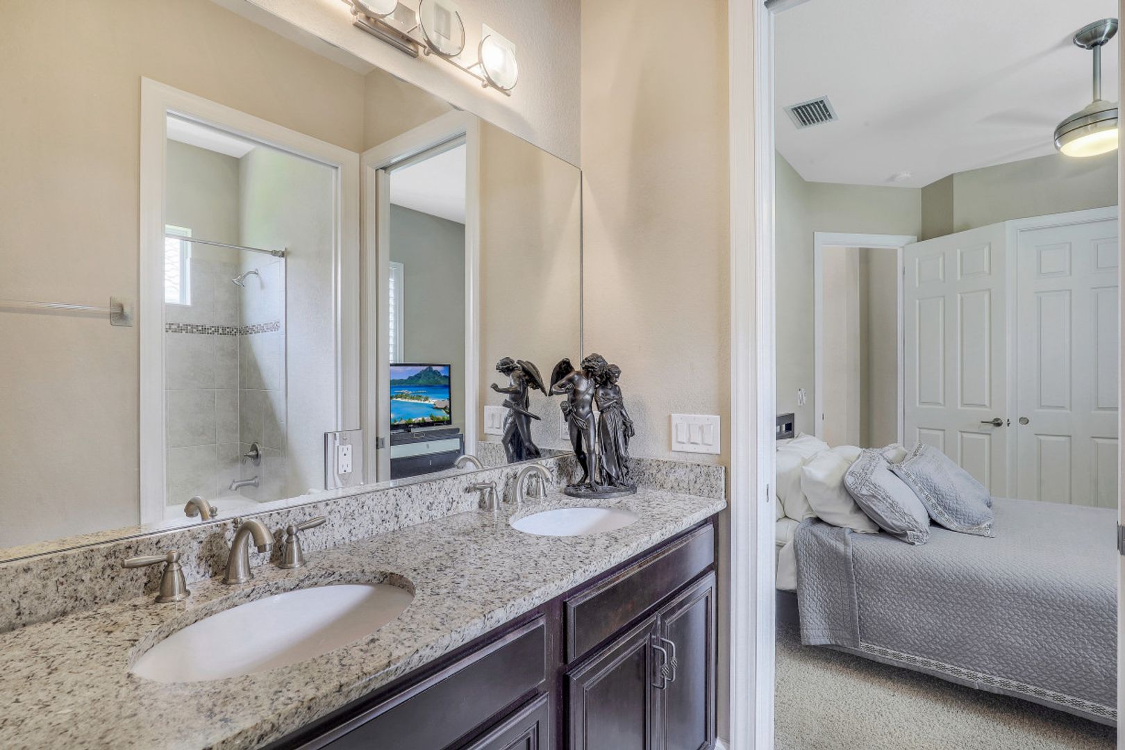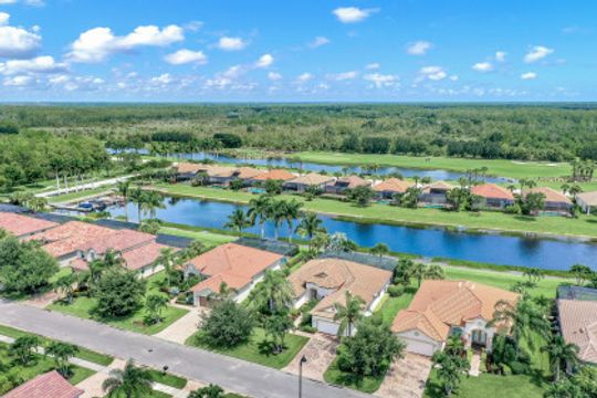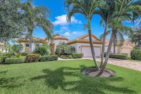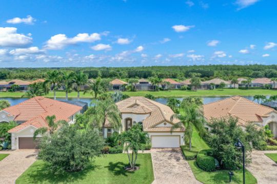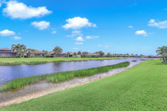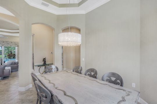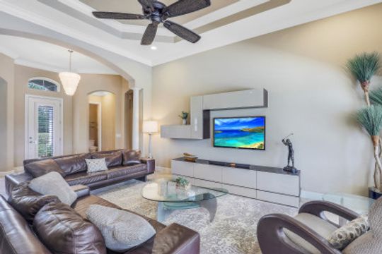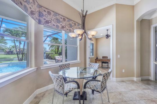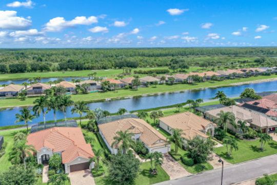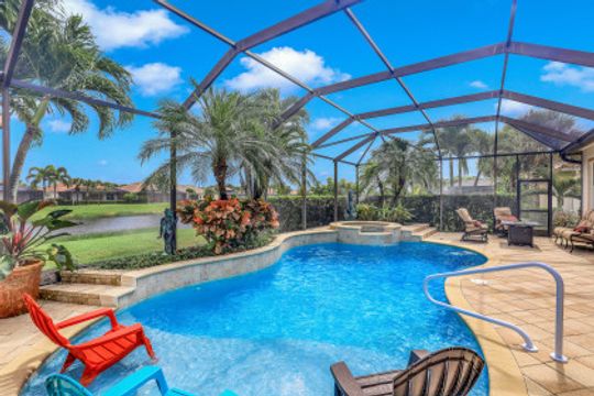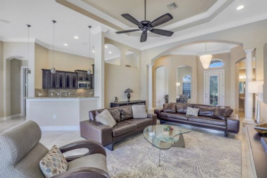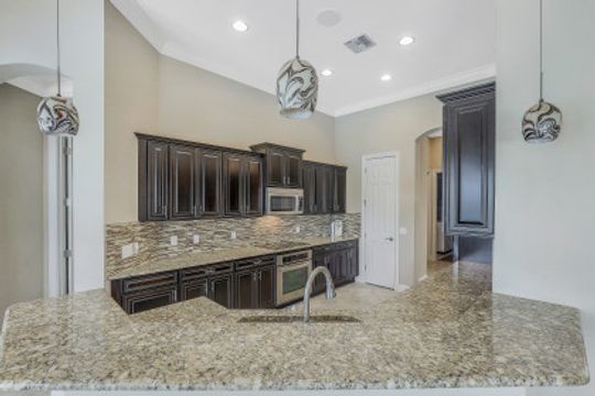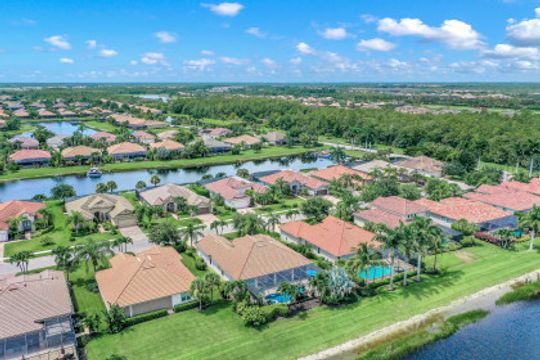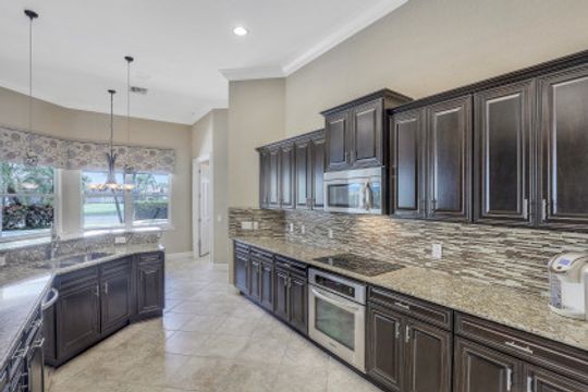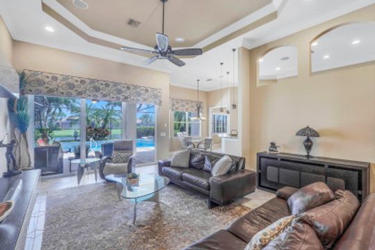 LIVE A VACATION LIFESTYLE IN A COUNTRY CLUB SETTING! This NAVIGABLE LAKE ACCESS home is situated on a large lot on a quiet cul-de-sac and features 3 bedrooms plus den/home office and 2.5 baths. There are many upgrades including IMPACT WINDOWS AND DOORS, OUTDOOR KITCHEN, HEATED POOL (WITH NEW POOL HEATER,) EXTENDED GARAGE and a NEWER HVAC. Additional Fine Appointments include upgraded cabinets, granite countertops, stainless appliances, 12 foot ceilings, crown molding and tray ceilings, diagonal tile plus more. The spacious Master Bedroom Suite has a slider leading to the beautiful pool with a sun shelf. The Quarry is a gated lakefront community offering over 500 acres of lakes for boating, water skiing, paddle boarding, jet skiing, kayaking, and fishing. The amenity-rich Beach Club includes Tennis, Pickelball, Bocce Ball, a Tiki Bar, Restaurant, Pool-Side food/drink service, Fitness Center, and a full-time activities director. (All included in HOA dues) The Beach Club and Lake Lodge are undergoing a $15 million Expansion Project. The Golf Lodge and Golf Club offers an 18 holes PGA Level Hurdzan Frye Golf Course and it's own private clubhouse and restaurant. (Membership Optional)