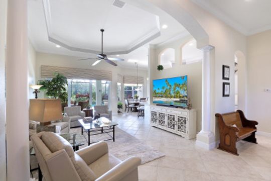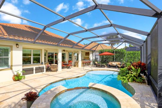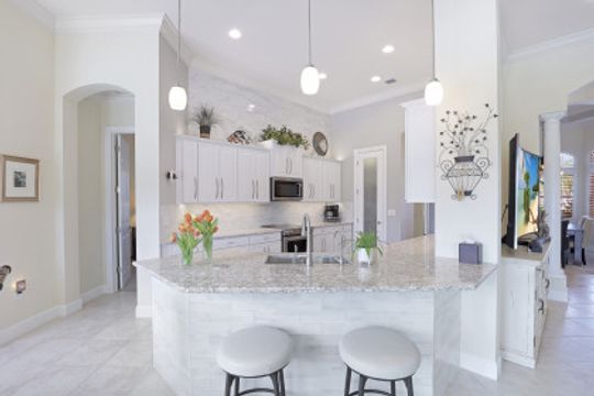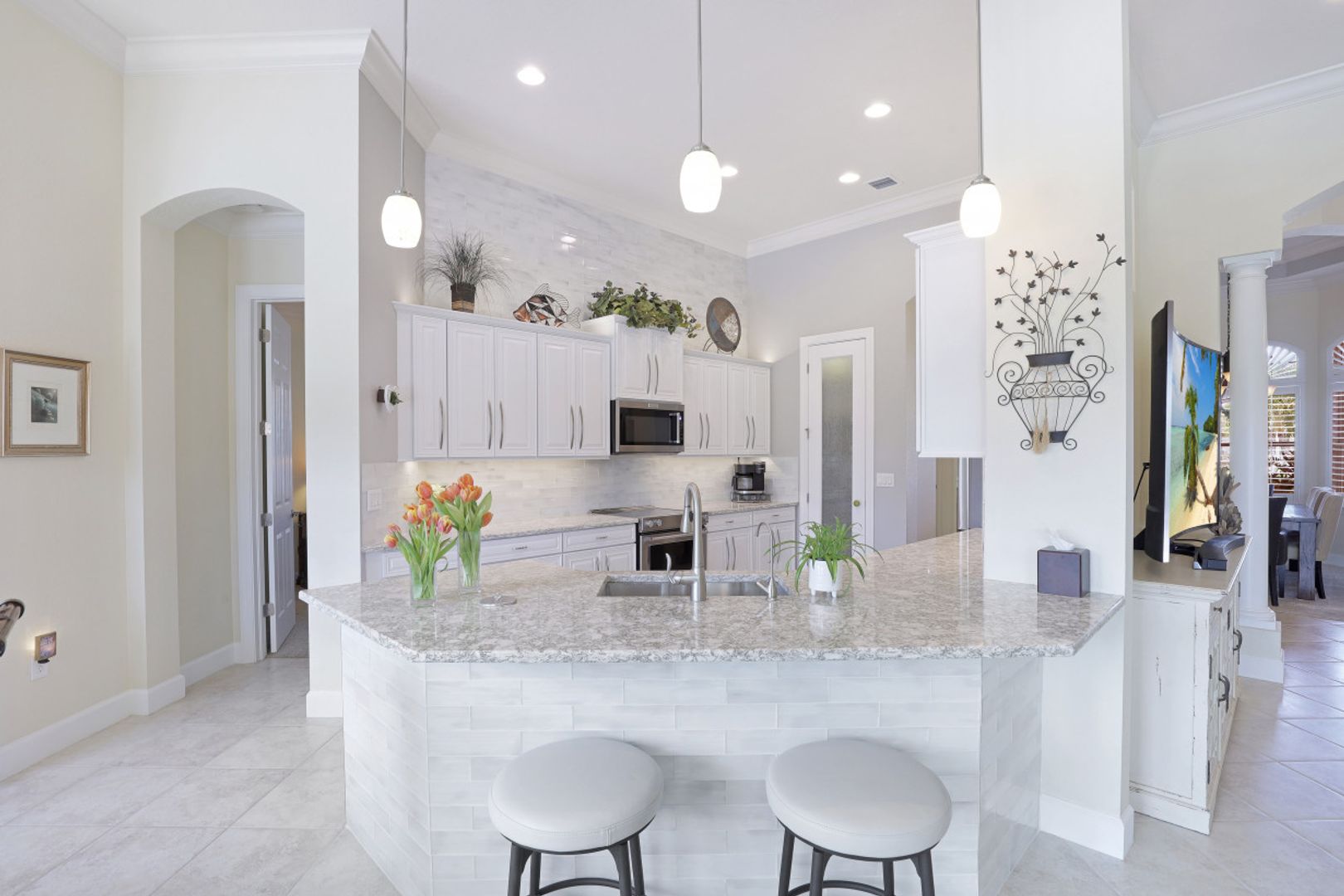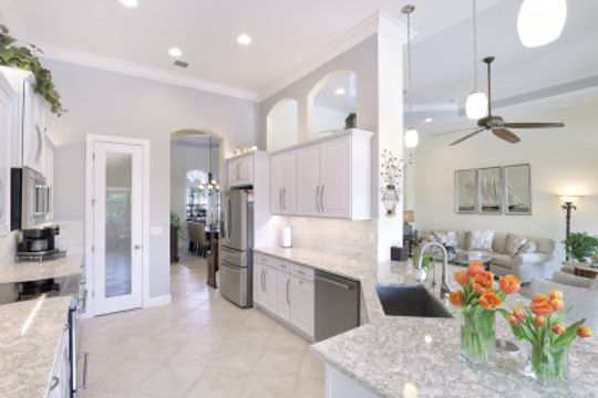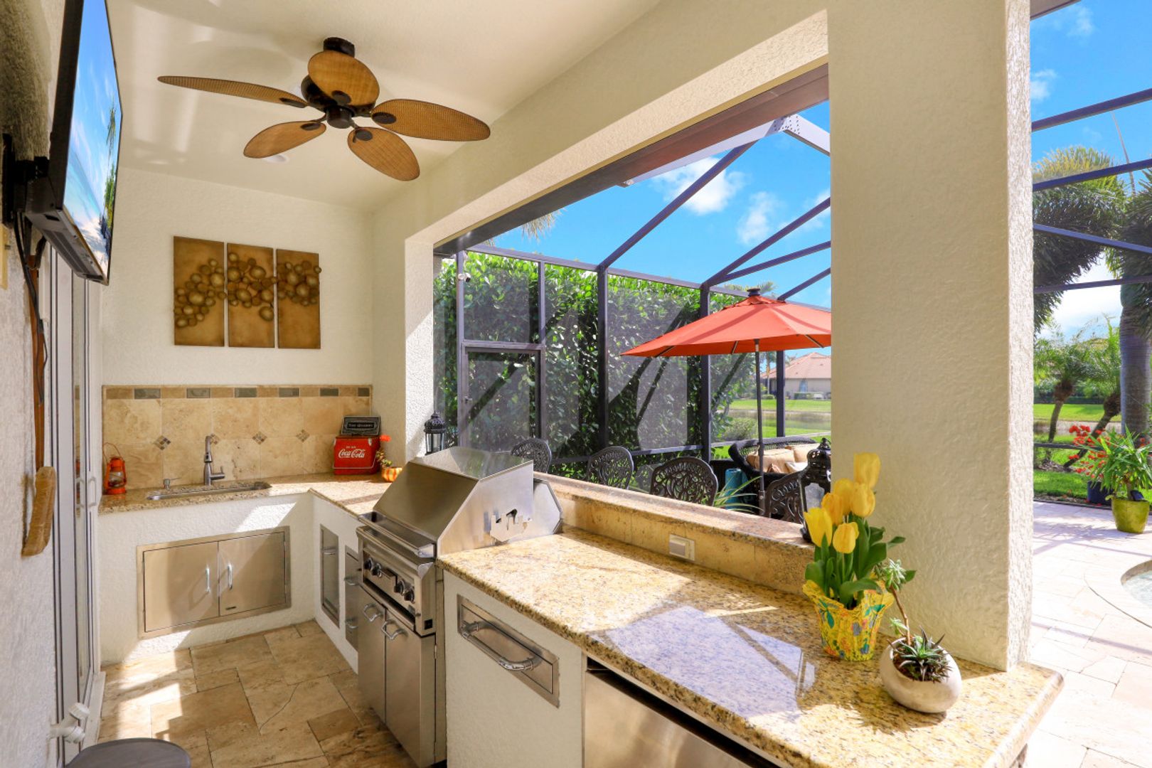 LIVE A VACATION LIFESTYLE IN A COUNTRY CLUB SETTING! THIS PRISTINE NAVIGABLE LAKE ACCESS home has a southern exposure on a quiet cul-de-sac and features 3 bedrooms plus den/home office/4th bedroom and 2.5 baths(can make a full bath if desired.) The remodeled kitchen has white cabinets, Quartzite counter tops, and stainless steel appliances. The spacious lanai with a beautiful view of the canal and lake has a salt water pool /spa and an outdoor kitchen. This home can also have a DOCK. The many upgrades include IMPACT WINDOWS AND DOORS, 4Ft EXTENDED GARAGE, plantation shutters, hardwood in den, crown moulding throughout plus many more.The Quarry is a gated lakefront community offering over 500 acres of lakes for boating, water skiing, paddle boarding, jet skiing, kayaking, and fishing. The amenity-rich Beach Club includes Tennis, Pickleball, Bocce Ball, a Tiki Bar, Restaurant, Pool-Side food/drink service, Fitness Center, and a full-time activities director. The Beach Club and Lake Lodge are undergoing a $15 million Expansion Project. The Golf Lodge and Golf Club offers an 18 holes PGA Level Hurdzan Frye Golf Course and it's own private clubhouse and restaurant.(Membership Optional)