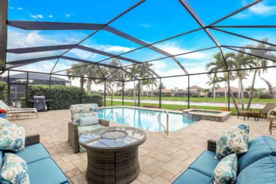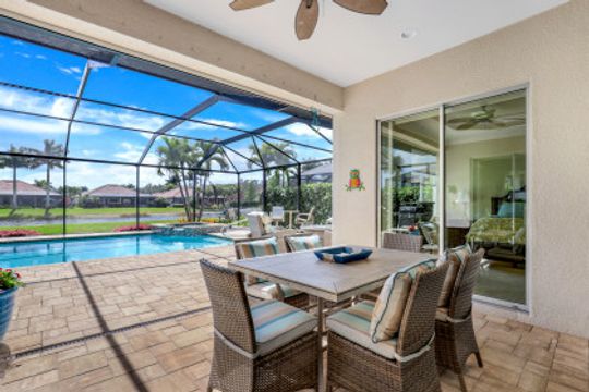 Property Information: LIVE A VACATION LIFESTYLE IN A COUNTRY CLUB SETTING - SOUTHERN EXPOSURE - TRANSFERABLE GOLF MEMBERSHIP AVAILABLE! This pristine 2+den/home office (potential 3rd bedroom) Bellingwood is well appointed. The kitchen boasts upgraded cabinets, granite counter tops, stainless steel appliances, crown molding and Hunter Douglas Blinds throughout. Other features include 2 year young AC, mini-split AC in garage, Storm Smart hurricane shutters, upgraded landscaping and outdoor lighting. The extended lanai has a custom pool/spa overlooking a navigable canal leading to 500+ acres of pristine lakes. It is a must see to appreciate the finishing touches! The Quarry is a gated lakefront community offering 500+ acres of lakes for boating, skiing, paddle boarding, jet skiing, and fishing. Additional amenities include Tennis, Pickleball, Bocce Ball, a Tiki Bar, Restaurants, Pool-side food/drink Service, Fitness Center and a full-time Activities Director. A $15M Expansion Project of the Lake Lodge & Beach Club is coming soon! The Golf Lodge & Golf Club offers an 18 hole PGA Level Hurdzan Frye Golf Course and its own recently updated clubhouse, dining room, and grill room. (Membership Optional.)