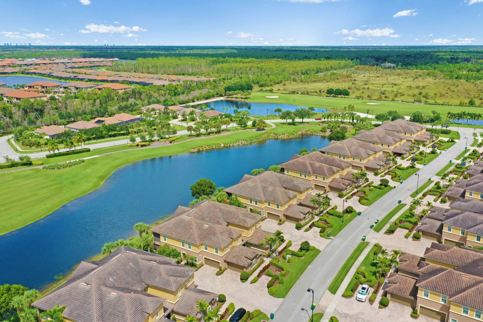 LIVE A VACATION LIFESTYLE IN A COUNTRY CLUB SETTING! ENJOY BEAUTIFUL SUNSETS WITH WATER AND GOLF VIEWS IN THIS PERFECT VACATION GETAWAY. This light and bright 2 bedroom plus den/3rd bedroom, 2 bath, Coach Home is being offered TURNKEY. All you need is your suitcase to start enjoying this amenity rich community. This home features tile in the living areas, granite countertops in the kitchen, and newer carpet in the Master Bedroom. The spacious lanai is perfect for watching the gorgeous Naples sunsets! An added bonus is a newer AC and Water heater ( 3 years). The Quarry is a gated lakefront community offering over 500 acres of lakes for boating, water skiing, paddle boarding, jet skiing, kayaking, and fishing. The amenity-rich Beach Club includes Tennis, Pickelball, Bocce Ball, a Tiki Bar, Restaurant, Pool-Side food/drink service, Fitness Center, and a full-time activities director. (All included in HOA dues) The Beach Club and Lake Lodge are undergoing a $15 million Expansion Project. The Golf Lodge and Golf Club offers an 18 holes PGA Level Hurdzan Frye Golf Course and it's own private clubhouse and restaurant. (Membership Optional)