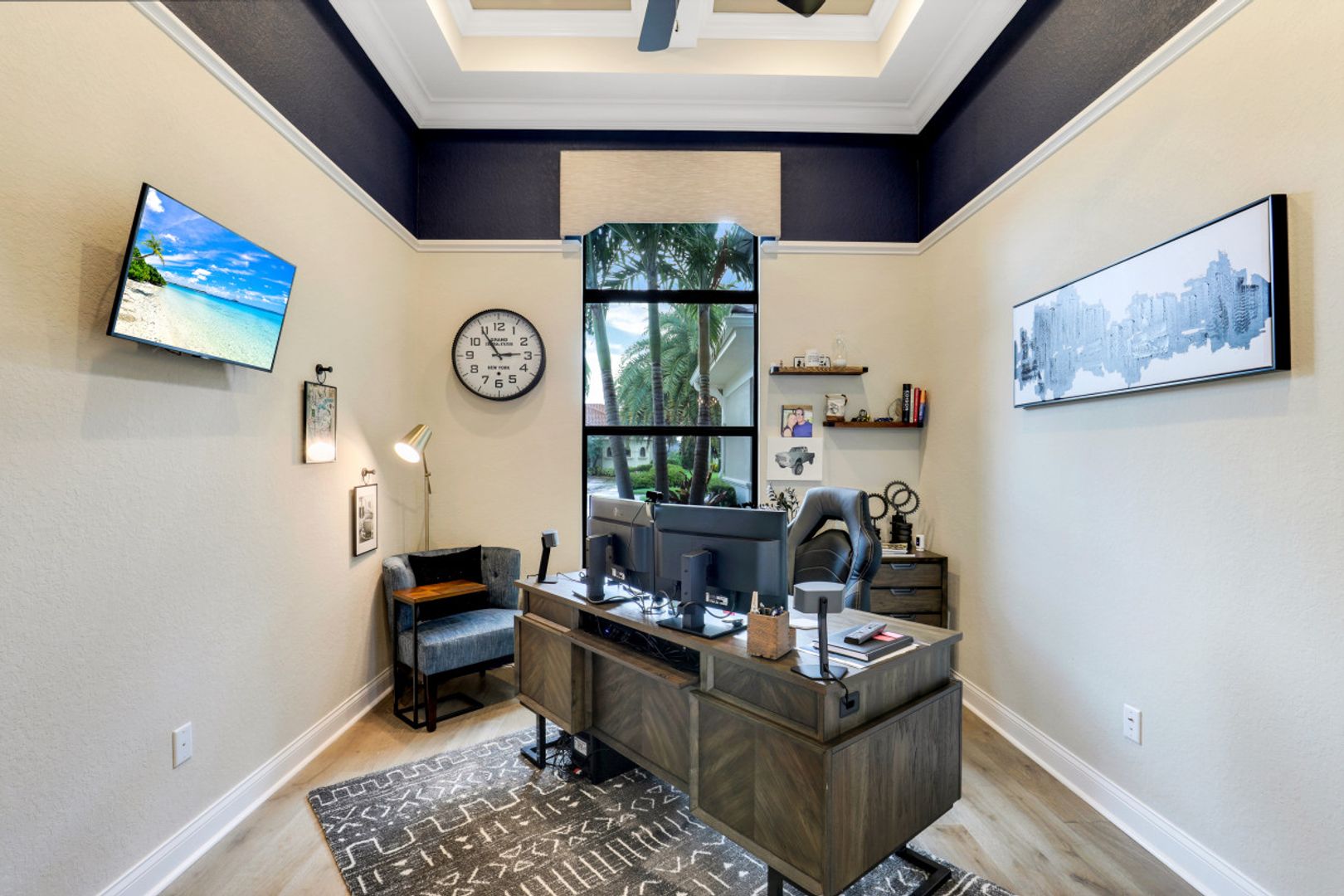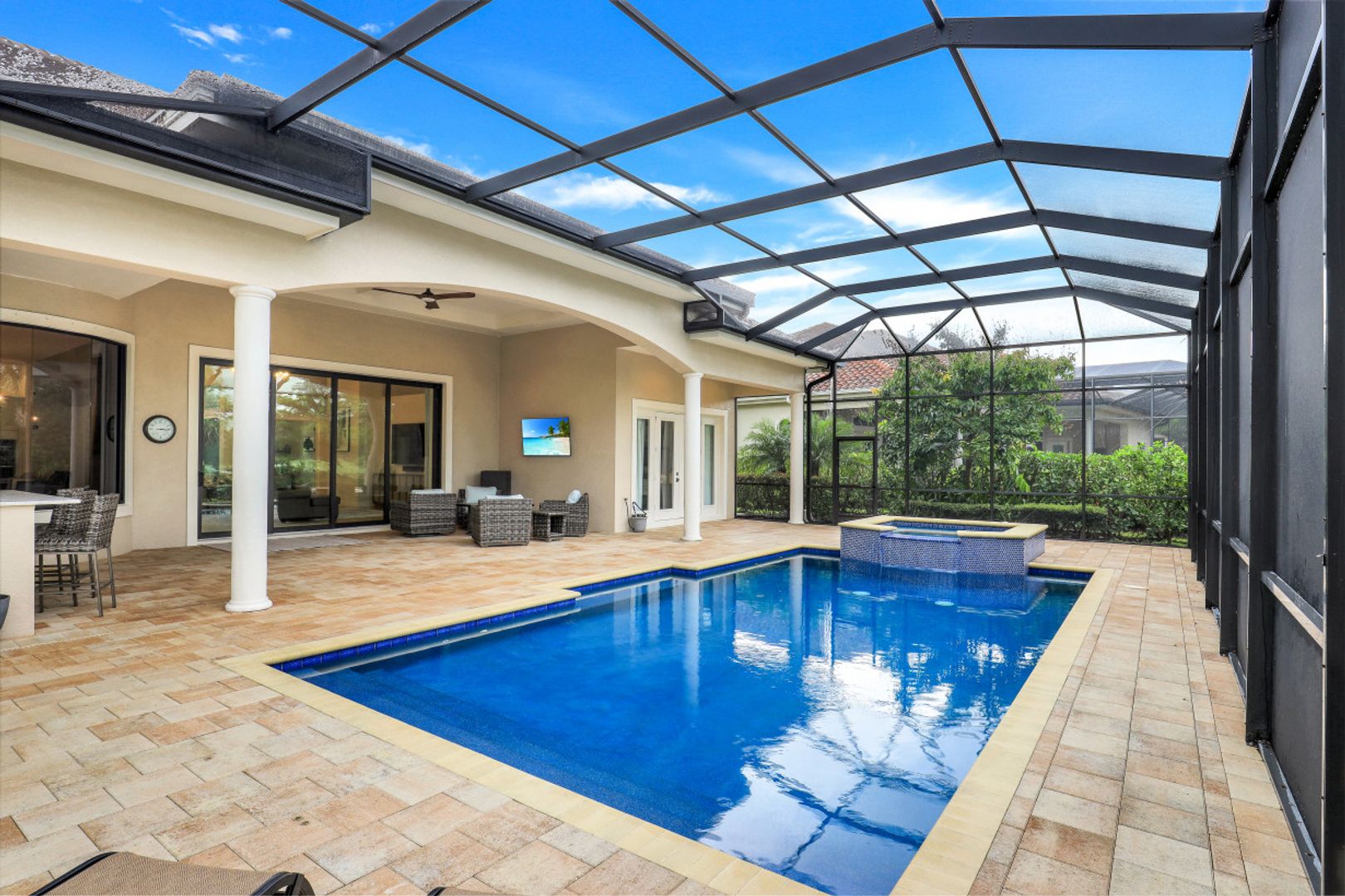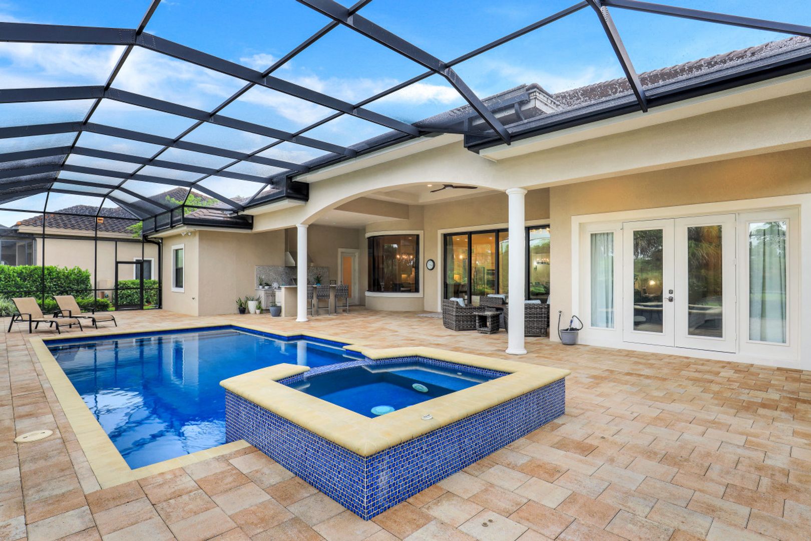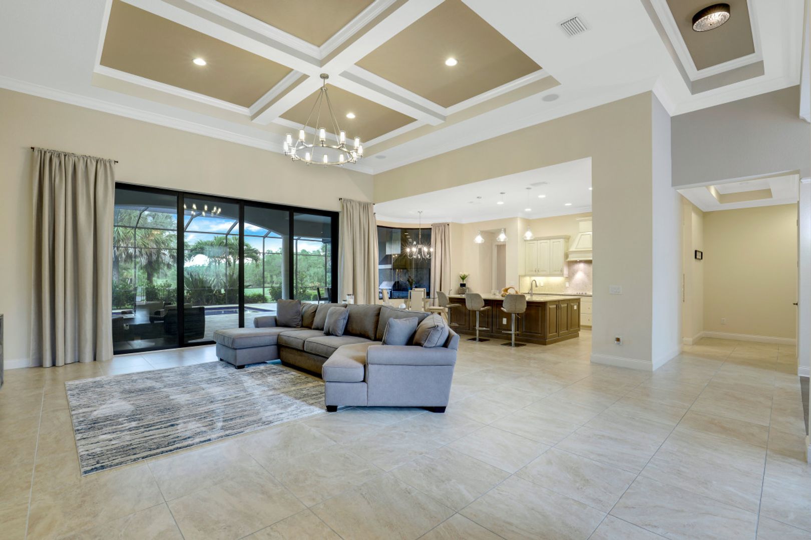 Welcome home to this gorgeous estate located in the Via Lago neighborhood of Renaissance! Showcasing a bright and open interior, this former model offers 5 bedrooms + den and 5.5 bathrooms. Enjoy 10 foot sliding pocket doors, opening the kitchen and great room up to the expansive outdoor living. The gourmet kitchen features quartz counter tops, double oven, large center island, large walk in pantry and a separate breakfast nook. Enjoy unobstructed sunset views of the lake and Holes #11, #12 and #13 of the Arthur Hills Championship Golf Course. The outdoor living area is complete with an amazing summer kitchen, expansive undercover space to enjoy outdoor dining and covered seating, and the beautiful custom pool and spa. Additional features include 18 foot volume ceilings, impact windows and doors, a golf cart garage and much more! Renaissance is a low density, luxury golf community located at the Daniels Corridor in Fort Myers, FL. The Renaissance lifestyle includes an Arthur Hills Championship Golf Course, resort style pool and pool pavilion, children’s play area, full service spa & fitness center, 6 red clay tennis courts, 2 pickle ball courts and 2 bocce courts.
