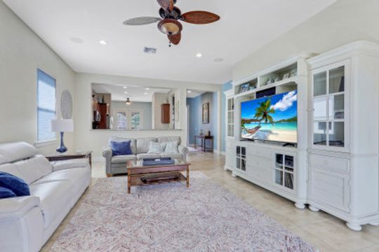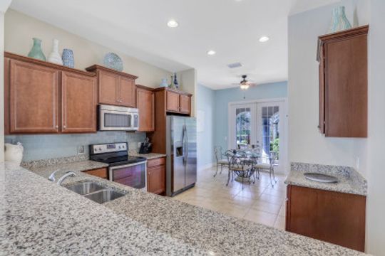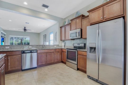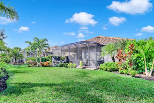 IT'S ALL ABOUT THE VIEWS! This Single Family home is a TROPICAL OASIS! It features 3 bedroom 2 bath plus extended 2 car garage and lanai. This great room style floor plan includes a large eat-in kitchen with with lots of natural light. Additional features are granite counter tops, stainless steel appliances, upgraded ceiling fans and lights, and painted interior rooms. The exterior has been also recently painted. It is a "must see" to appreciate the finishing touches! The Quarry is a gated lakefront community offering 500 plus acres of lakes for boating, skiing, paddle boarding, jet skiing, and fishing. Additional amenities include Tennis, Pickleball, Bocce Ball, a Tiki Bar, Restaurants, Pool-side food/drink Service, Fitness Center and a full-time Activities Director. A $15M Expansion Project of the Lake Lodge & Beach Club is coming soon! The Golf Lodge & Golf Club offers an 18 hole PGA Level Hurdzan Frye Golf Course and its own recently updated clubhouse, dining room, and grill room. (Membership Optional.)
