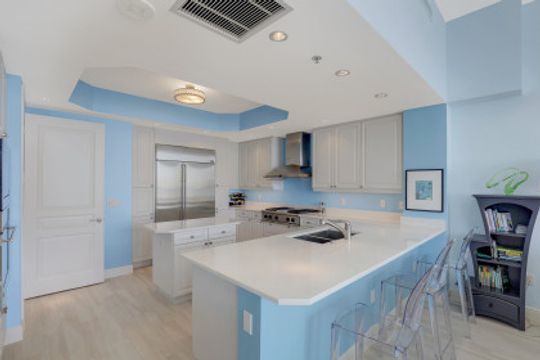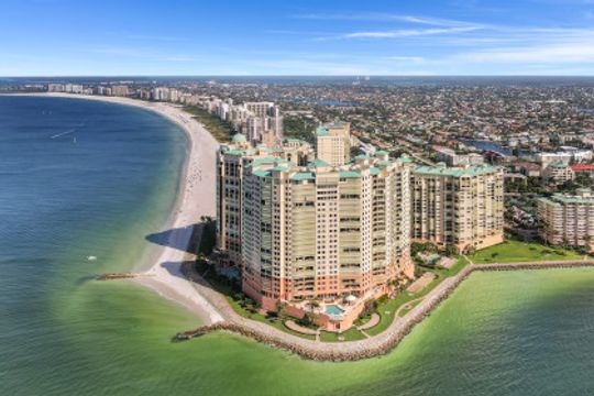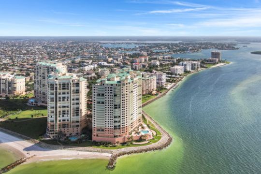 Stunning redecorated Belize with 11 foot ceilings unique to only a few floors. Over 3100 square feet of luxury. Three bedroom, three and a half bath with living room and family room. Gorgeous views of 10,000 islands and secluded beaches with no posts to obstruct your view on this floor-plan. Light and bright colors with new wood look tile floor in the living areas. Impact glass windows, gas stove, shutters on perimeter of both lanais. Amenities of this fabulous gated community include guest suites, movie theater, fitness center, sauna, library, social room, tennis , billiards, pool, beach access, fishing pier. Two garage parking spaces and extra storage. Furnished with exclusions. Owners are allowed one pet up to 25 pounds.