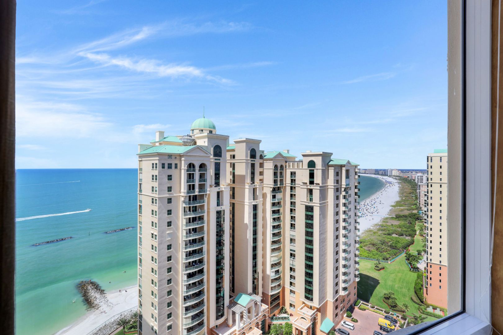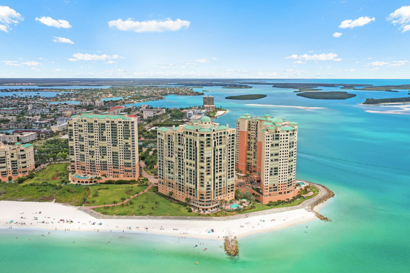 Welcome to sensational sunsets and boundless ocean views from this 24th floor beachfront Penthouse in the exclusive Belize Condominium Community of Cape Marco. Private elevator entry to the home delivers spectacular views of the 10,000,000 Islands, the Gulf of Mexico and Crescent Beach. The open living and formal dining area share a balcony terrace. A panel lined, box beamed sitting room with fireplace and water view terrace leads to the gourmet dine-in kitchen with seamless custom cabinetry, center island, gas cooktop, double wall ovens, subzero refrigerator, a built-in desk and dual breakfast bars. The primary master suite includes an ornate armoire wall, and his and her custom built-in walk-in closets with cedar closet, an opulent marble bath with sauna, built-in cosmetic vanity, jetted tub, walk-in shower and two separate sink vanities. Spread across the leisure wing are 3 additional generous ensuite bedrooms with luxurious baths, built-in walk-in closets and water view terraces. A sizeable beachfront study features a wet bar, a walk-in temperature-controlled wine cellar and wraparound terrace. Throughout the home find marble flooring, hand wall finishes, crown moldings, architectural arches, tray ceilings and decorative ornaments enhancing the grandeur of the home. Cape Marco living offers a luxurious lifestyle with gated entry, 24-hour front desk, guest suites, pool & spa, fitness center, club rooms, bar, billiards, tennis, fishing boardwalk and direct beach access. The ultimate Marco Island luxury retreat awaits! Pat Wilkins, Broker Associate | 239-290-8593 | www.Belize2403.com