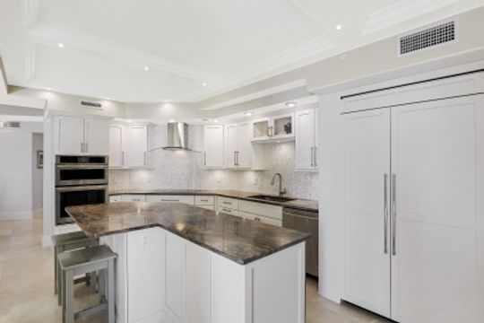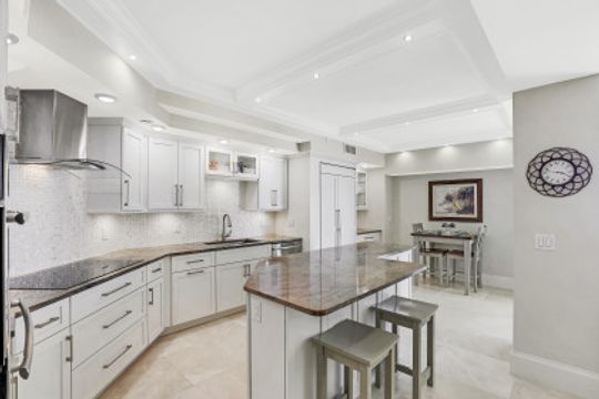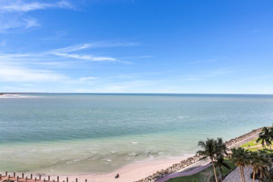 Rarely does an opportunity come around to acquire a masterpiece like Monterrey 906. This three bedroom, 2 bath, Gulf/beachfront condo has been stunningly re-imagined top to bottom by renowned Keith Braun Builders. A large balcony with Southwest exposure offers incredible views of the Gulf, the beach and the island. The entire unit has been redone with exquisite Marble floors throughout, the bathrooms and kitchen have exotic natural stone countertops with custom cabinets. The kitchen also features Jenn Air Stainless appliances with an Induction cooktop, wall ovens, built in Fridge and wine cooler. Nothing was left untouched in the unit and it has barely been lived in following the remodel. Smooth drywall, custom ceiling treatments with recessed LED lighting and beams, solid core doors, oversized baseboards/trim and full storm shutters are some of the upgrades in the unit. The craftsmanship is second to none and has to be seen. It is being sold fully furnished for your convenience. Cape Marco is an amenity rich private beachfront community with direct beach access, 6 Har-Tru tennis courts, fitness center, dock and fishing pier, lush landscaping and a 24 hr guarded gate for security.